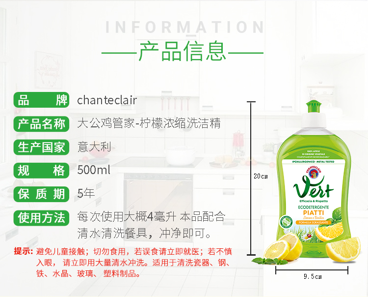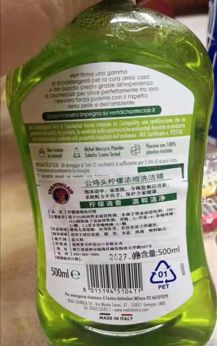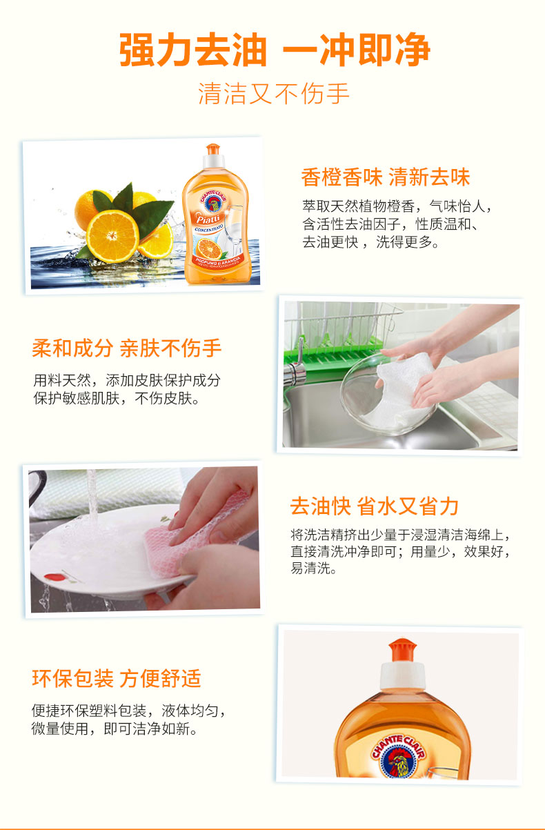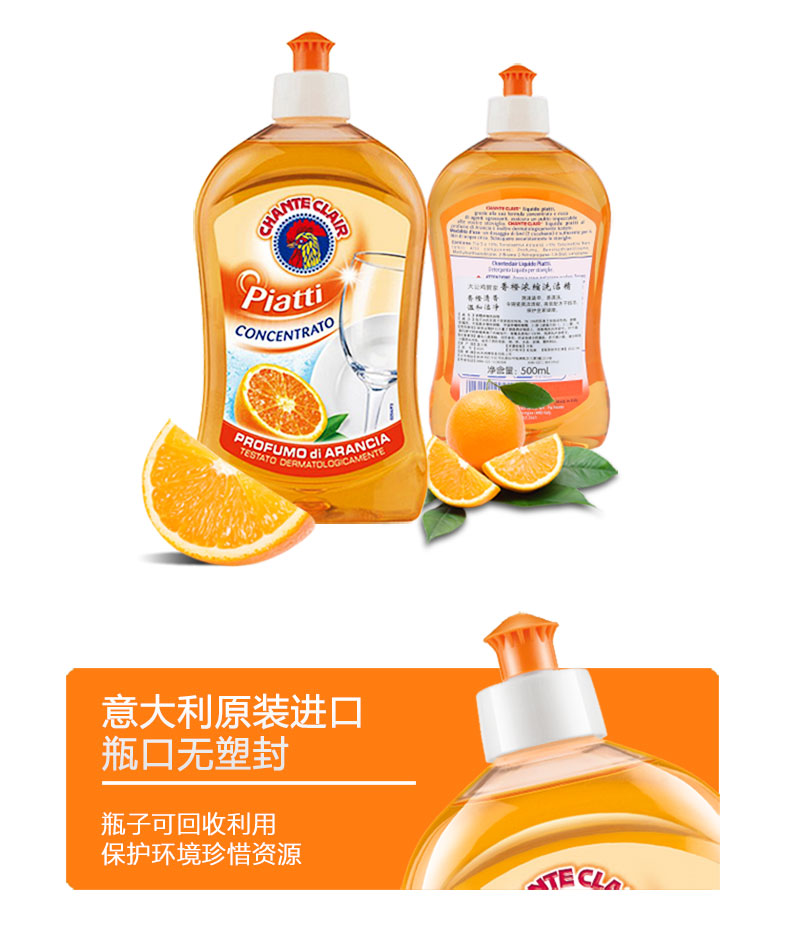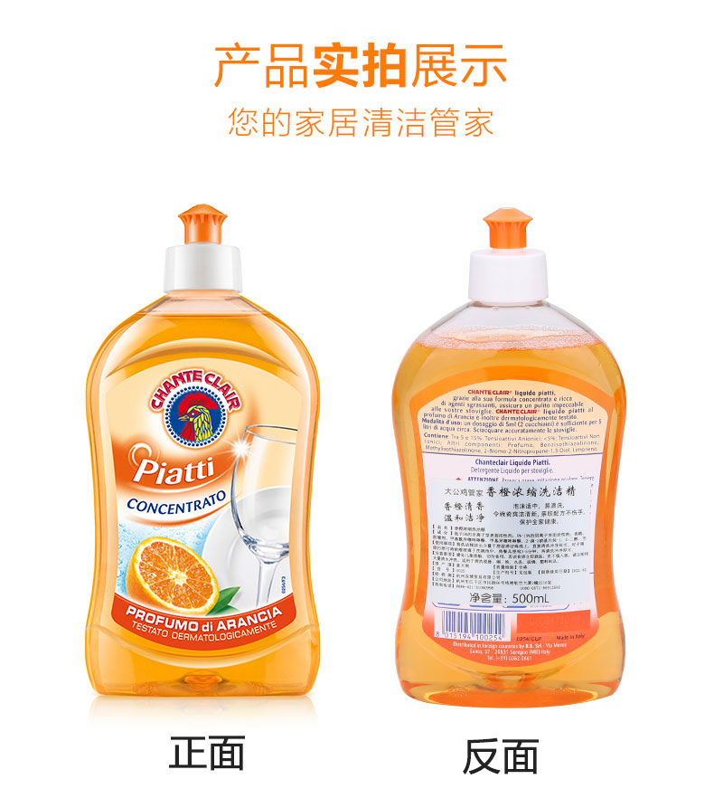 【中欧班列精选2瓶】意大利洗洁精 大公鸡管家浓缩洗洁精 香橙/柠檬味 500ml/瓶