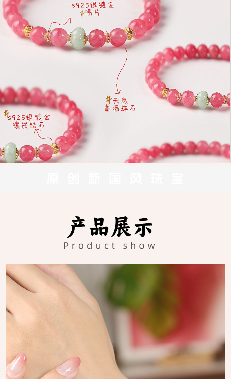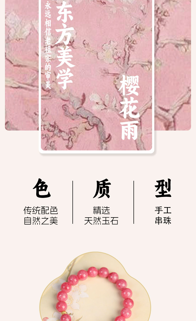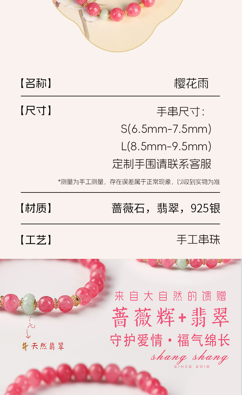 天然蔷薇辉樱花雨翡翠手串