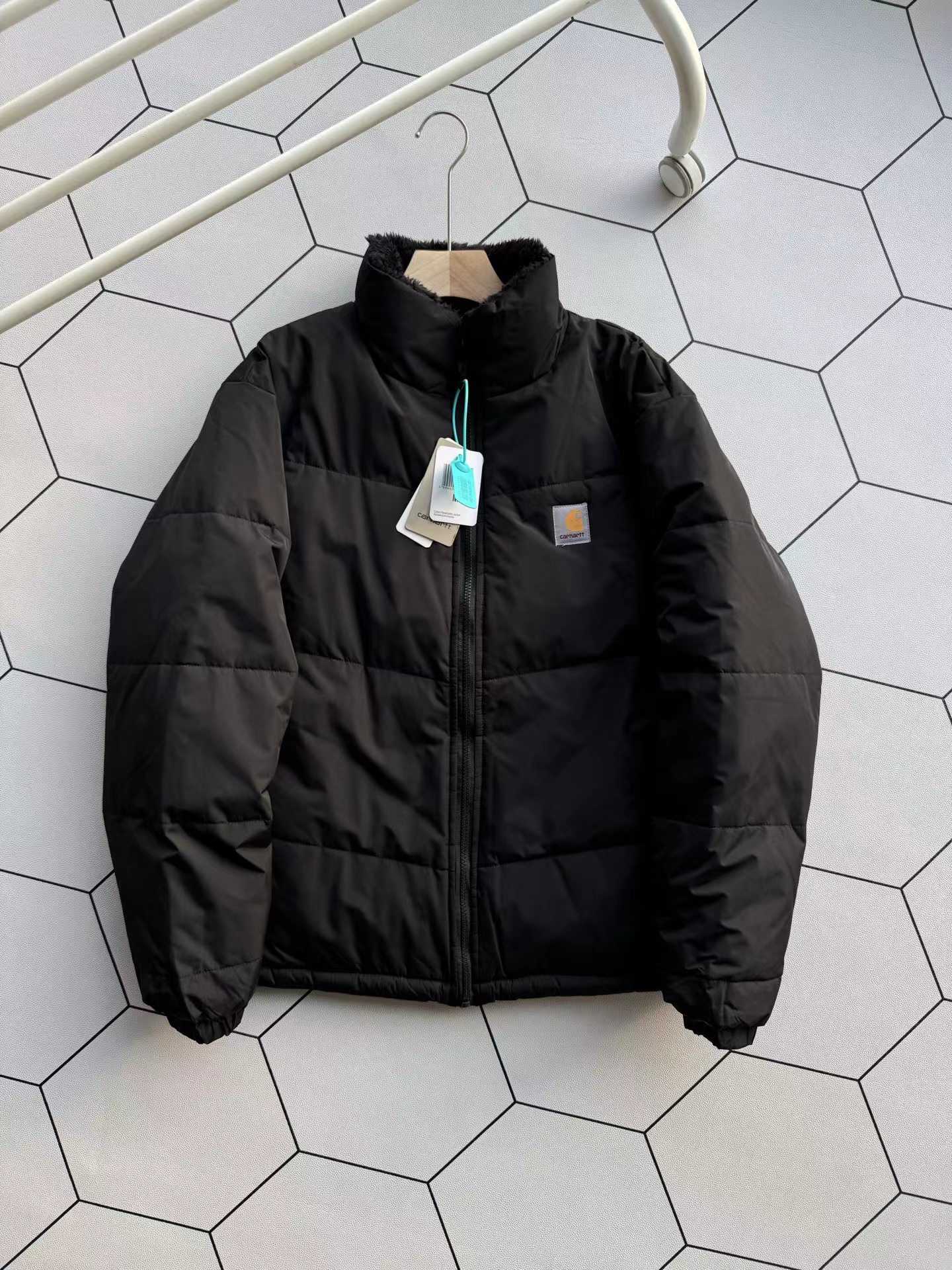 美式复古Logo立领羽绒保暖防寒夹克外套男女款双面可穿,羽绒充绒