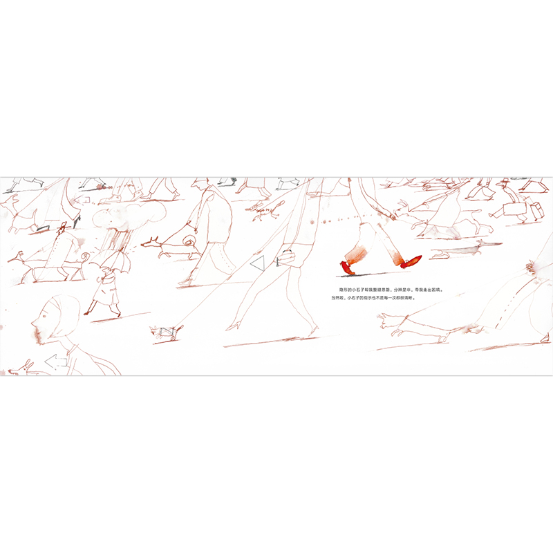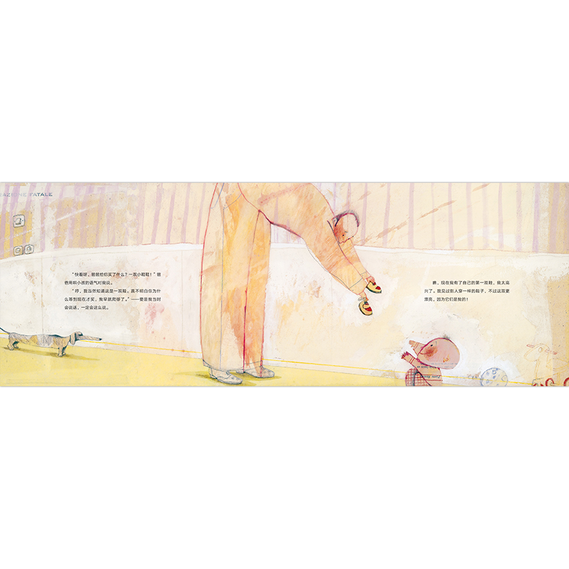 这是一本极具艺术性、文学性及哲思性的图画书,讲述了一个关于鞋子的故事,也是关于人生的故事。蹒跚学步的小男孩得到了自己的*双鞋,从那时开始,他可以选择自己的路。男孩逐渐意识到自己想要什么、喜欢什么。后来,他发现鞋子里有一块隐形的小石子,当他偏离了内心的道路时,这块石子就会提醒他。慢慢地,男孩长大了。当他恋爱时,鞋子好似长了翅膀,变得无比轻盈;在军营里,当他变成了一个数字,小石子会在鞋里狂怒。鞋子见证了他的每一步,与他分享了每一份幸福与痛苦,而隐形的石子则让他始终忠于自己的内心。时间悄然流逝,曾经的男孩当了爸爸、爷爷,有一天,他回到童年生活的城镇,买下了一双鞋,送给自己的孙子……