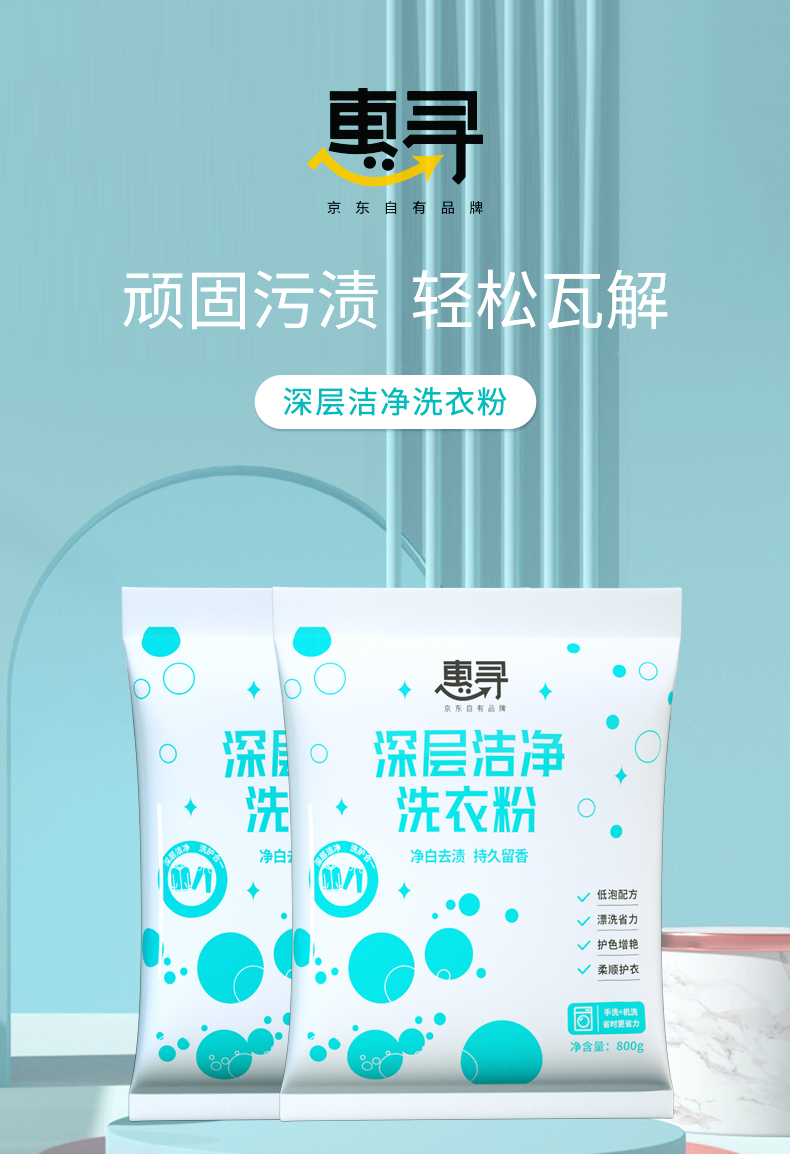 京东自有品牌 惠寻柠檬味洗洁精1kg 洗衣粉500g*3 内衣洗衣液300ml*1瓶装