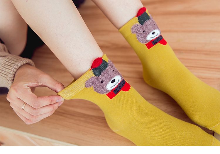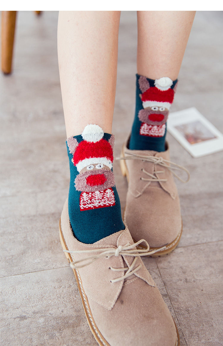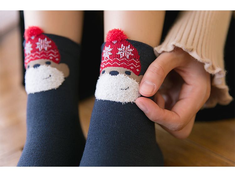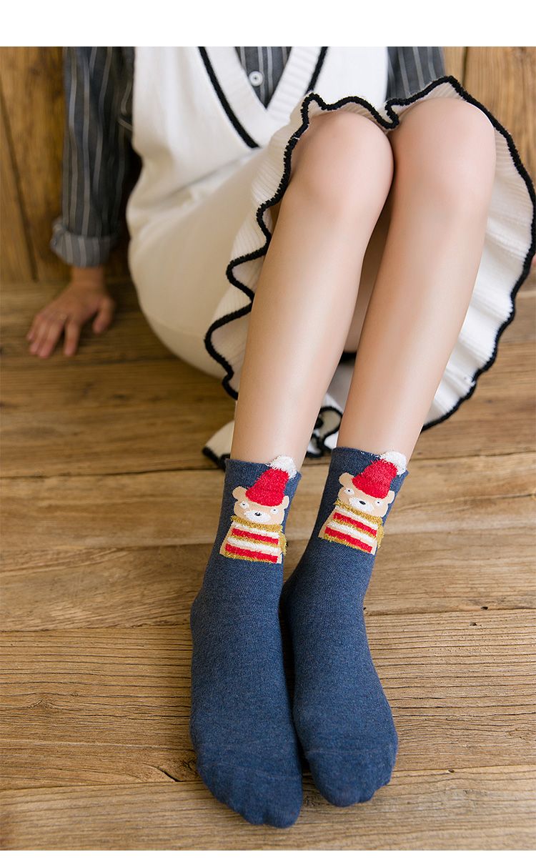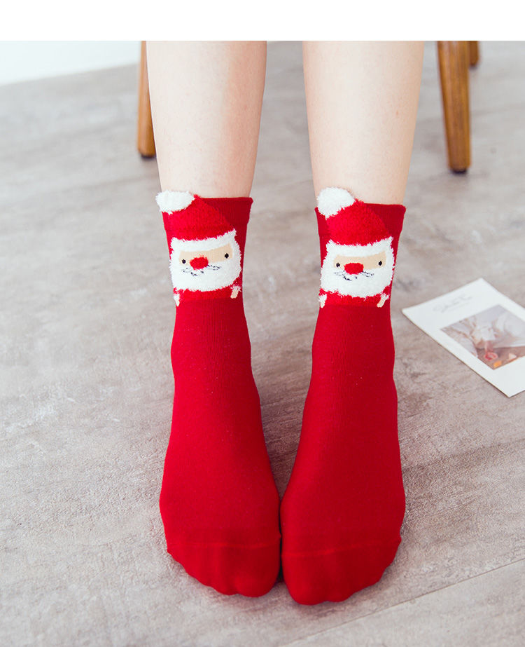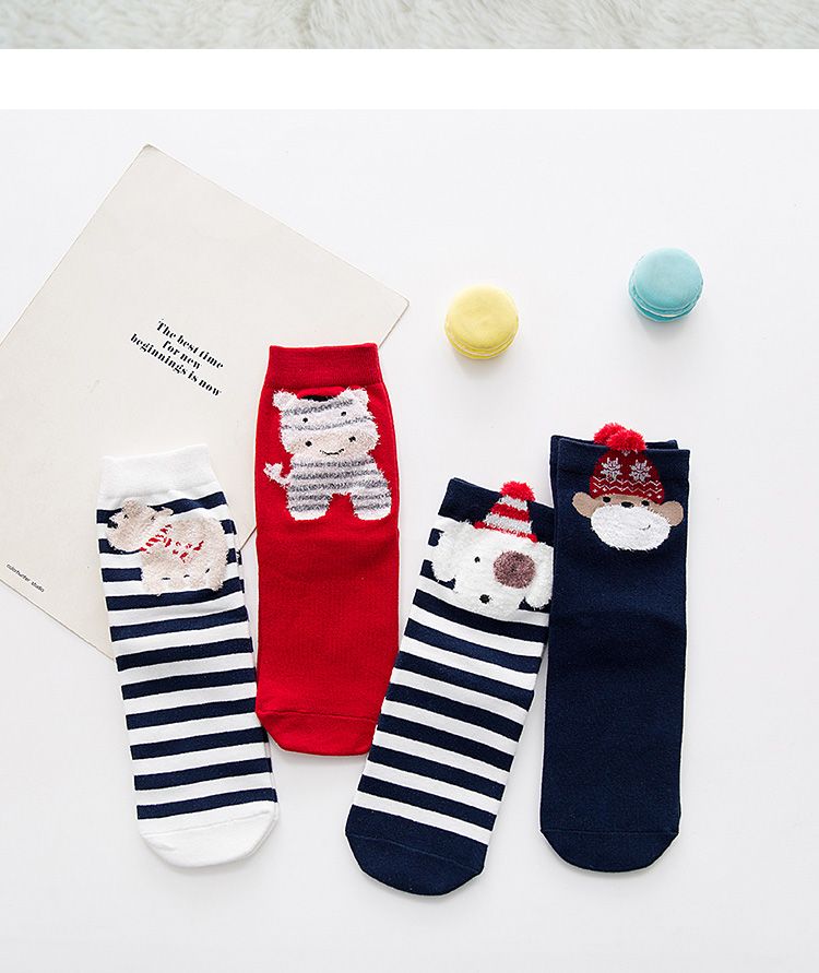 圣诞袜可爱满满 4双礼盒装秋冬卡通耳朵棉袜大红色新年喜庆中筒本命袜子女gjl20