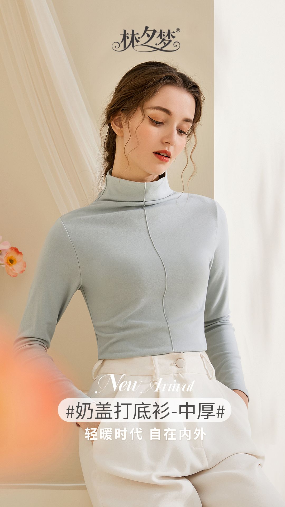 【奶盖打底衫-中厚】轻暖时代自在内外日光面料轻薄暖空气半高领显瘦优雅外衣版型内外皆宜_2135