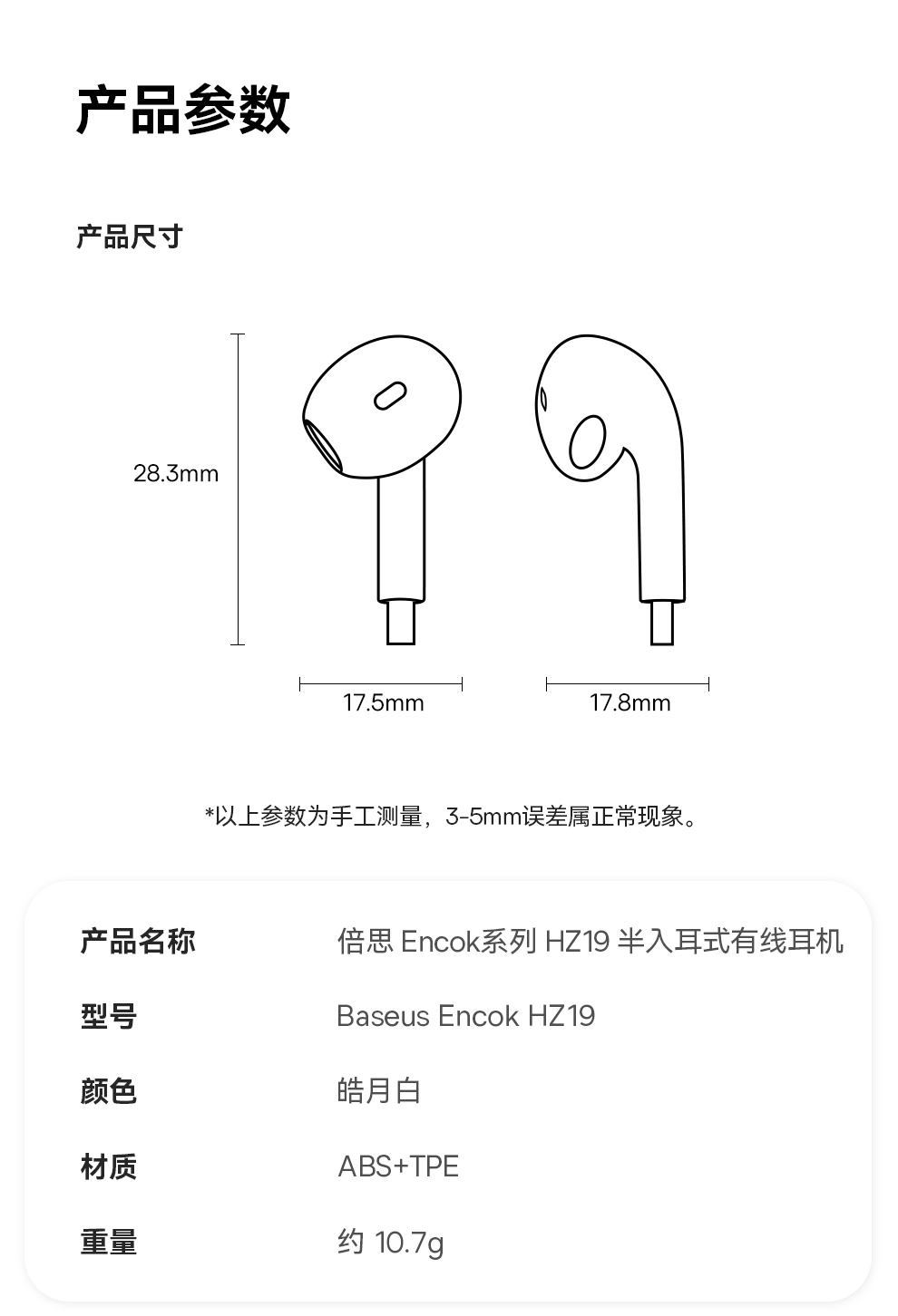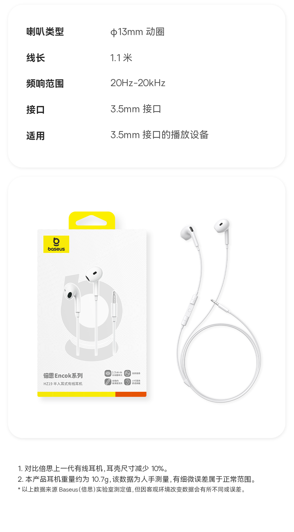 【69元3件】倍思 Encok系列 HZ19/CZ19 线控耳机