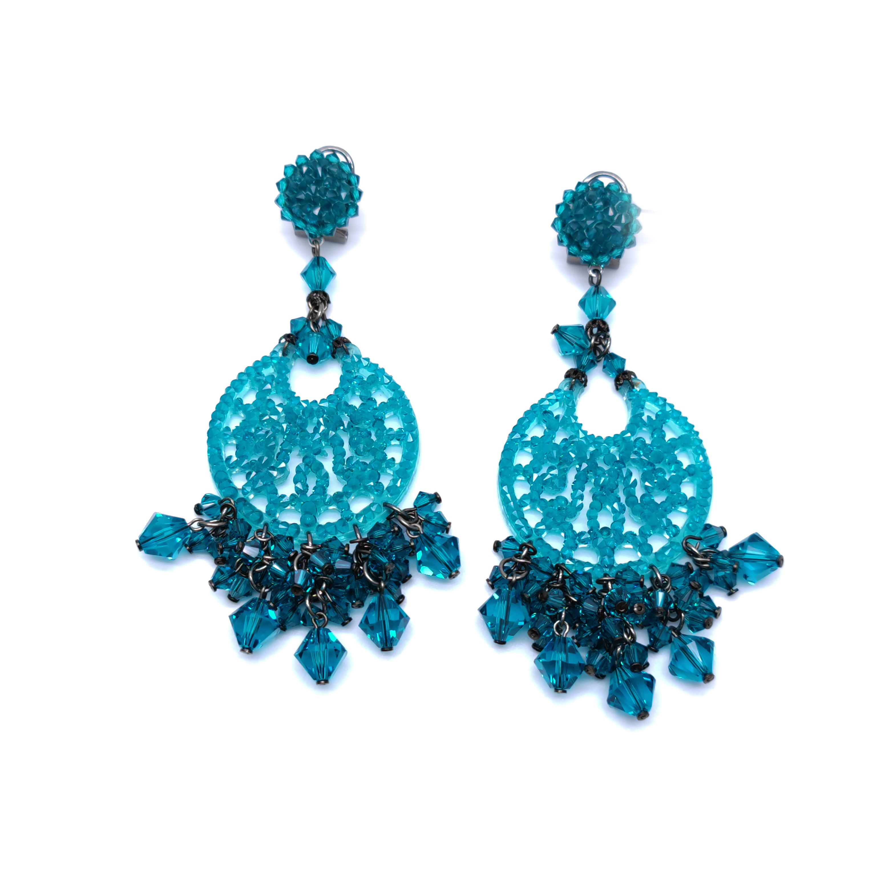 耳环材质为:珠宝级合金镀氧化银 人工玻璃水晶 珠宝级树脂