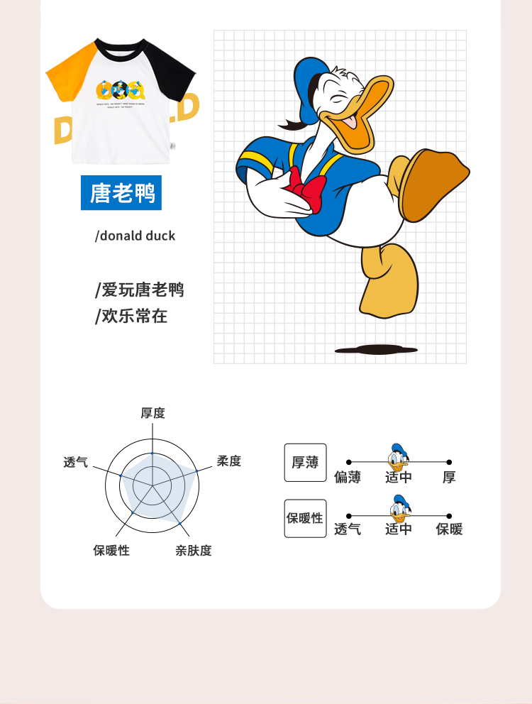 【商场同款】迪士尼童装儿童短袖T恤夏季清爽洋气中大童宝唐老鸭卡通纯棉上衣