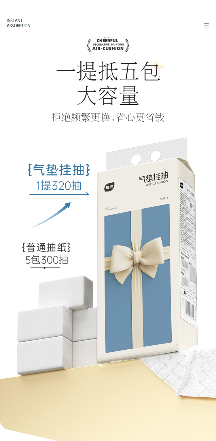 【送无痕挂钩】植护气垫纸巾挂抽整箱 纸抽取式加厚实惠装