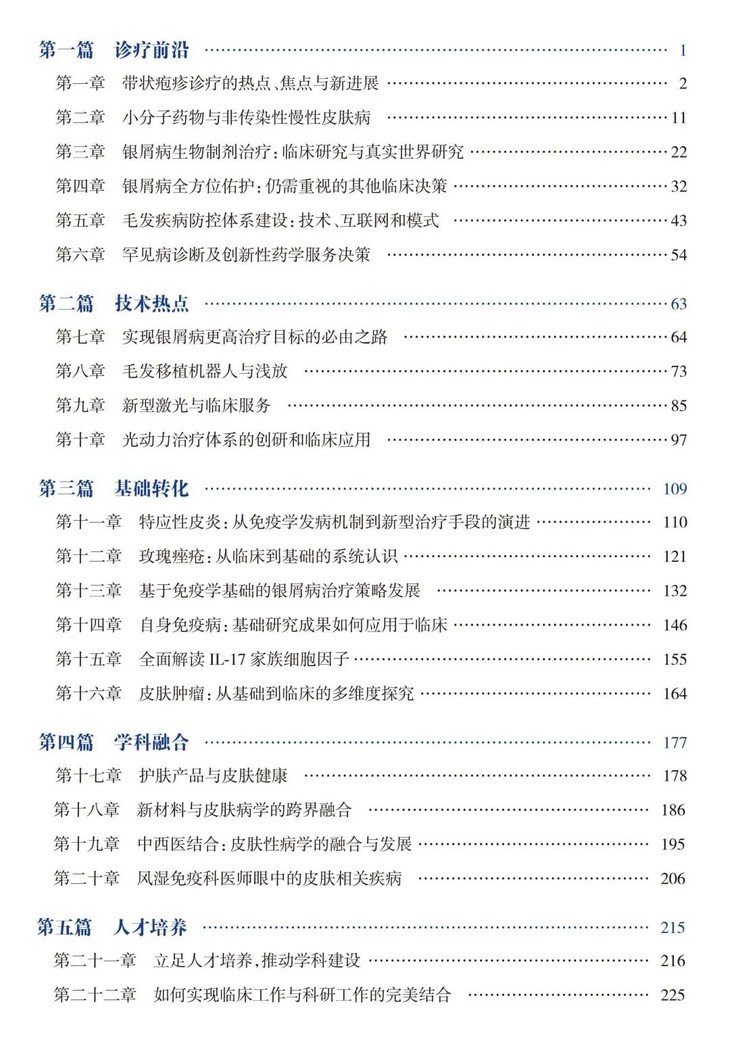 五大方面:皮肤科诊疗前沿;技术热点;基础转化;学科融合;人才培养。