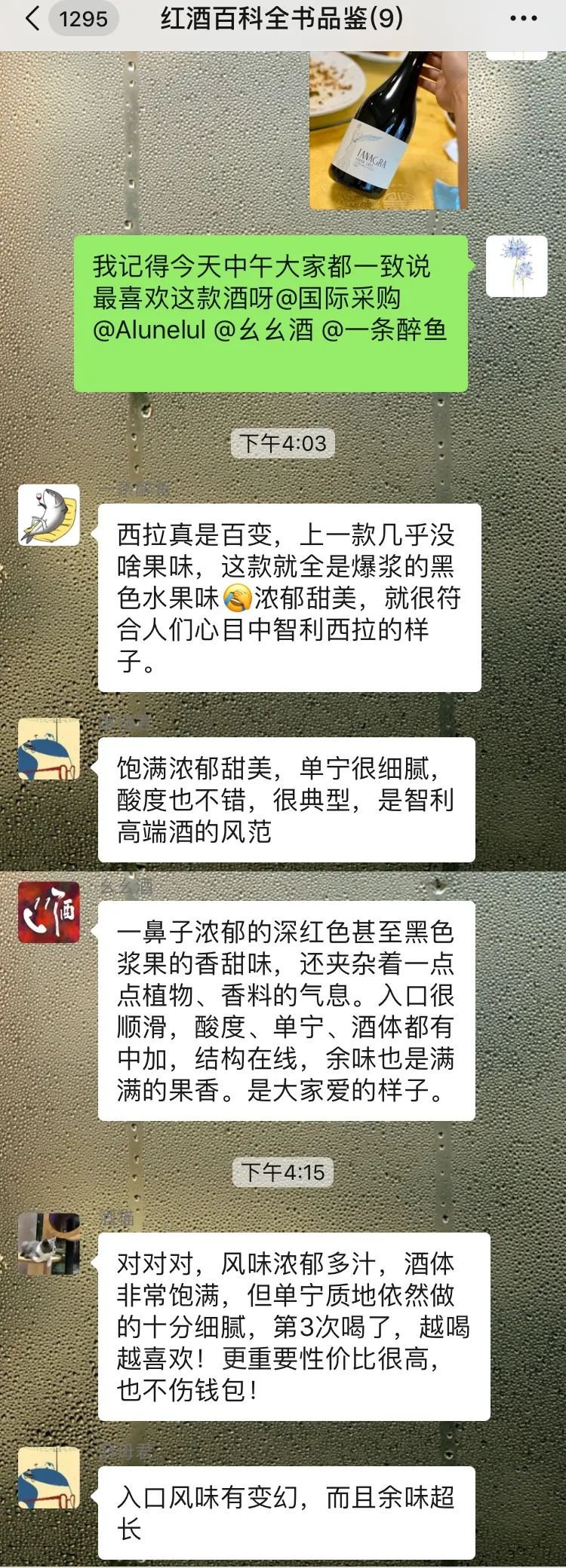 编辑集体品尝,果味丰腴成熟很讨喜,酒质非常高!