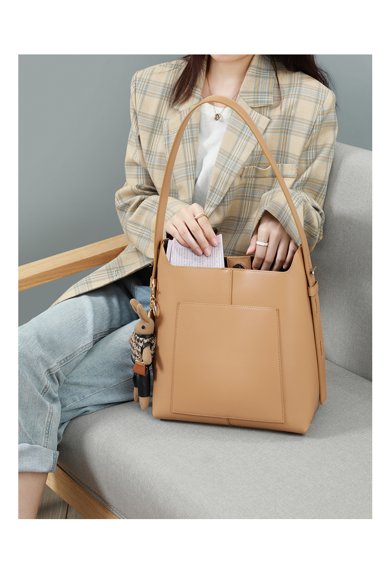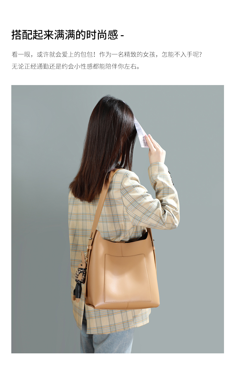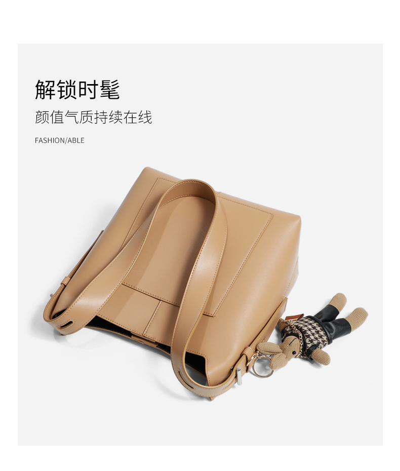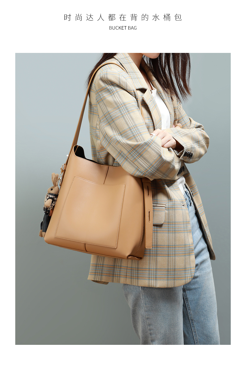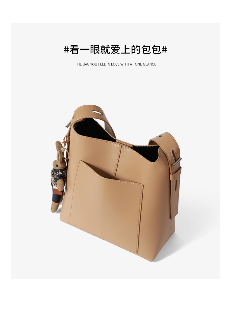 【可爱兔子挂饰 时尚通勤水桶包】包包2021新款女包腋下包Z皮水桶包时尚百搭大容量单肩包