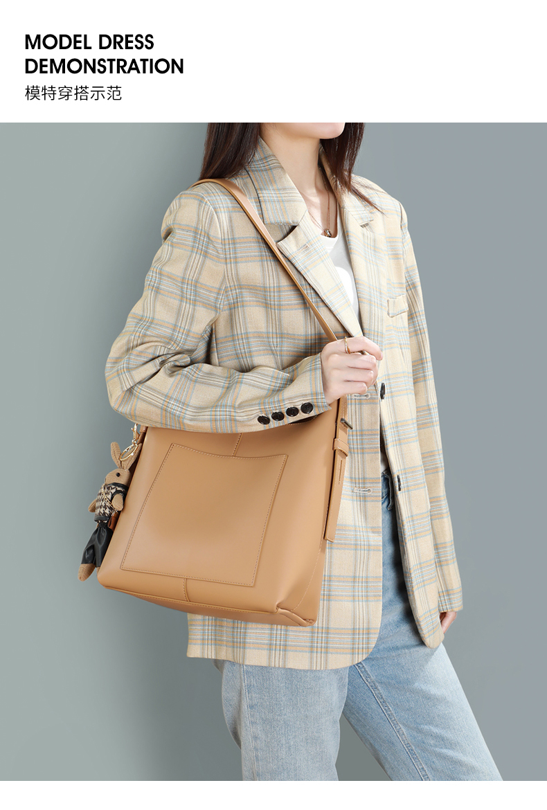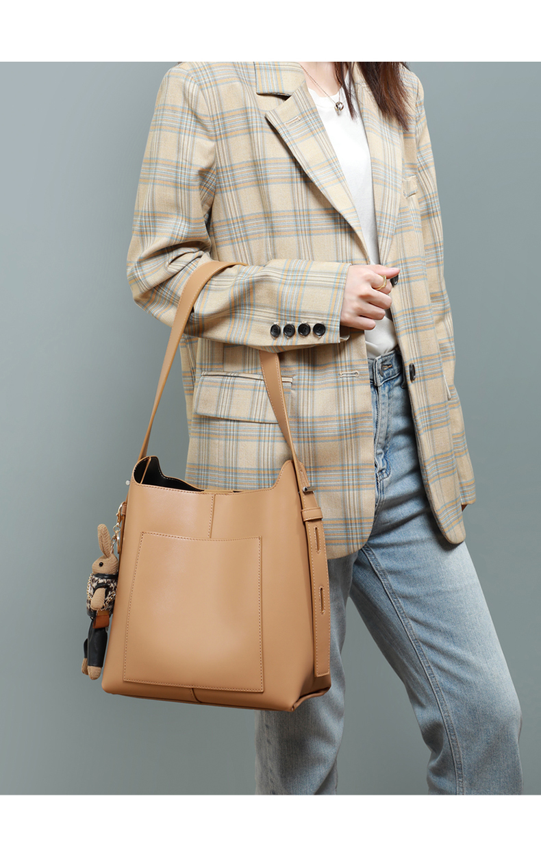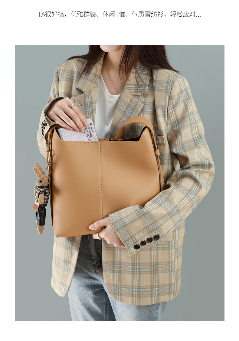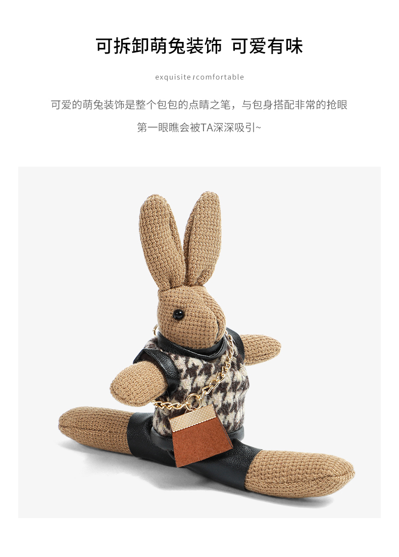 【可爱兔子挂饰 时尚通勤水桶包】包包2021新款女包腋下包Z皮水桶包时尚百搭大容量单肩包