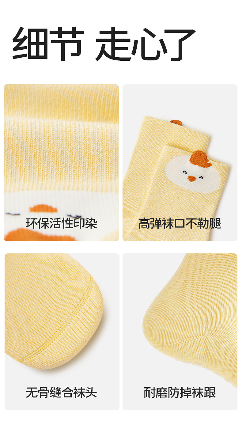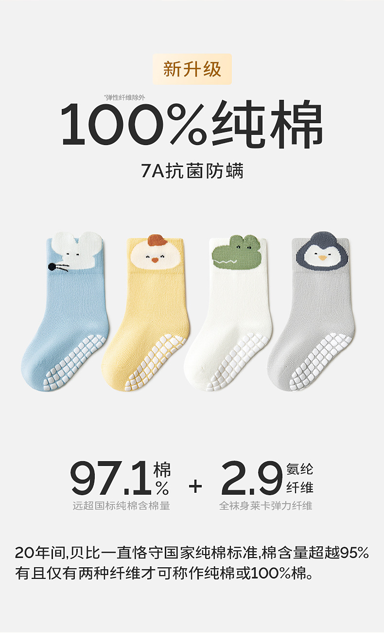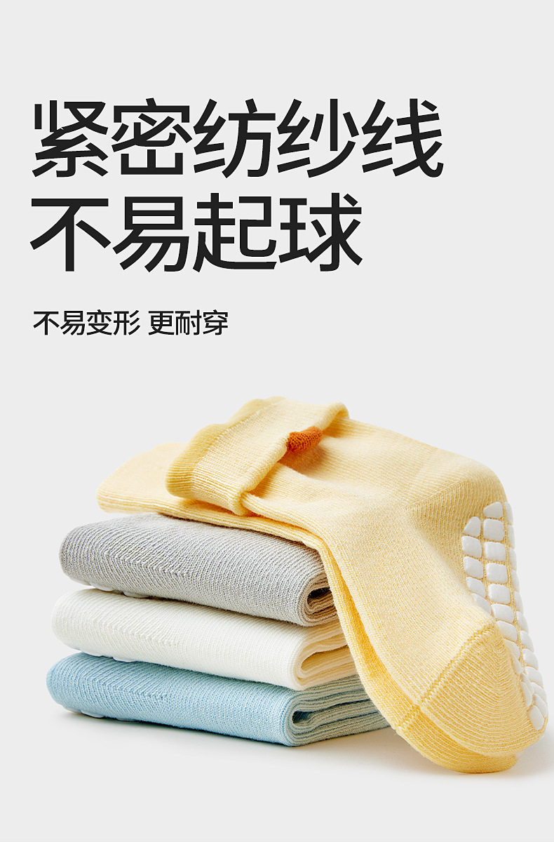 【四双组合装!】贝比婴儿袜2024秋季新款100%纯棉男女宝宝袜子点胶防滑儿童地板袜