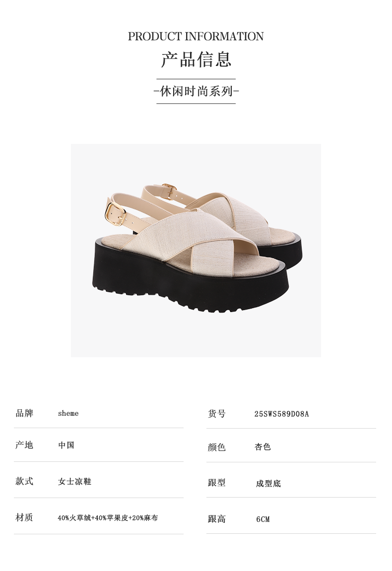 sheme环保火草绒皮料拼接女式厚底凉鞋时尚百搭可定制