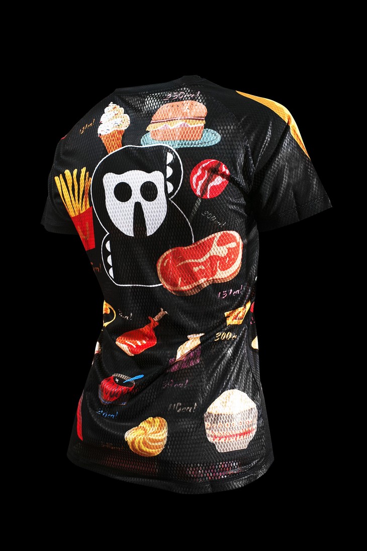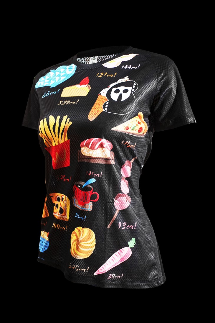 严素跑步TEE,卡路里,女款,黑/粉色,轻量 短袖T恤 速干快干 ,严素态度 吃货