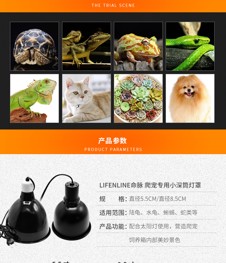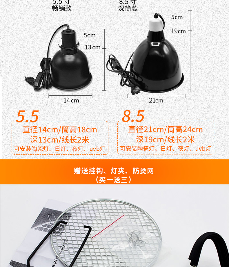LIFELINE爬宠宠物箱uva uvb加热高反射 5.5 / 8.5寸小深筒陶瓷灯罩-分销