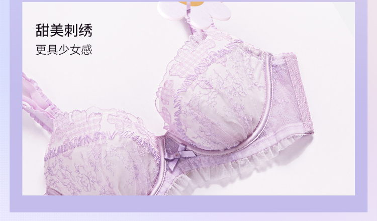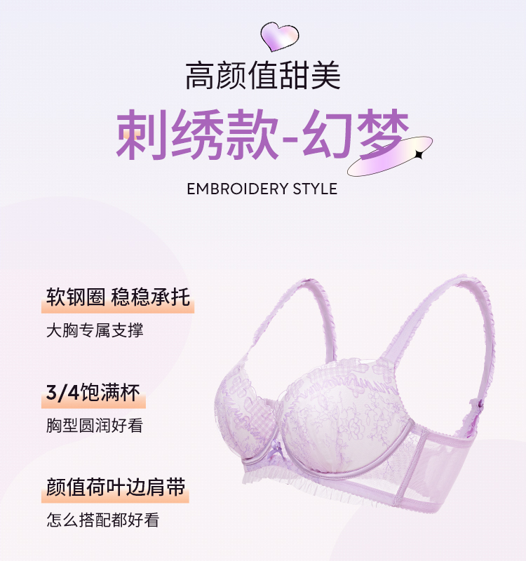 【门店积分兑换】奶糖派大胸显大经典刺绣蕾丝幻梦内衣上托聚拢挺拔饱满甜美文胸女