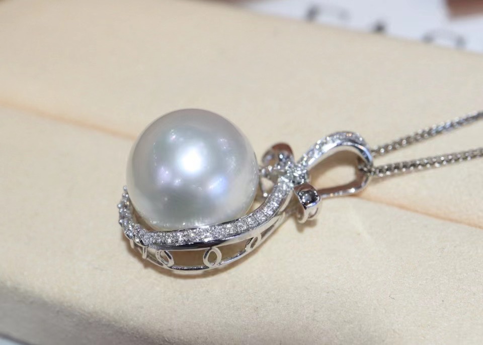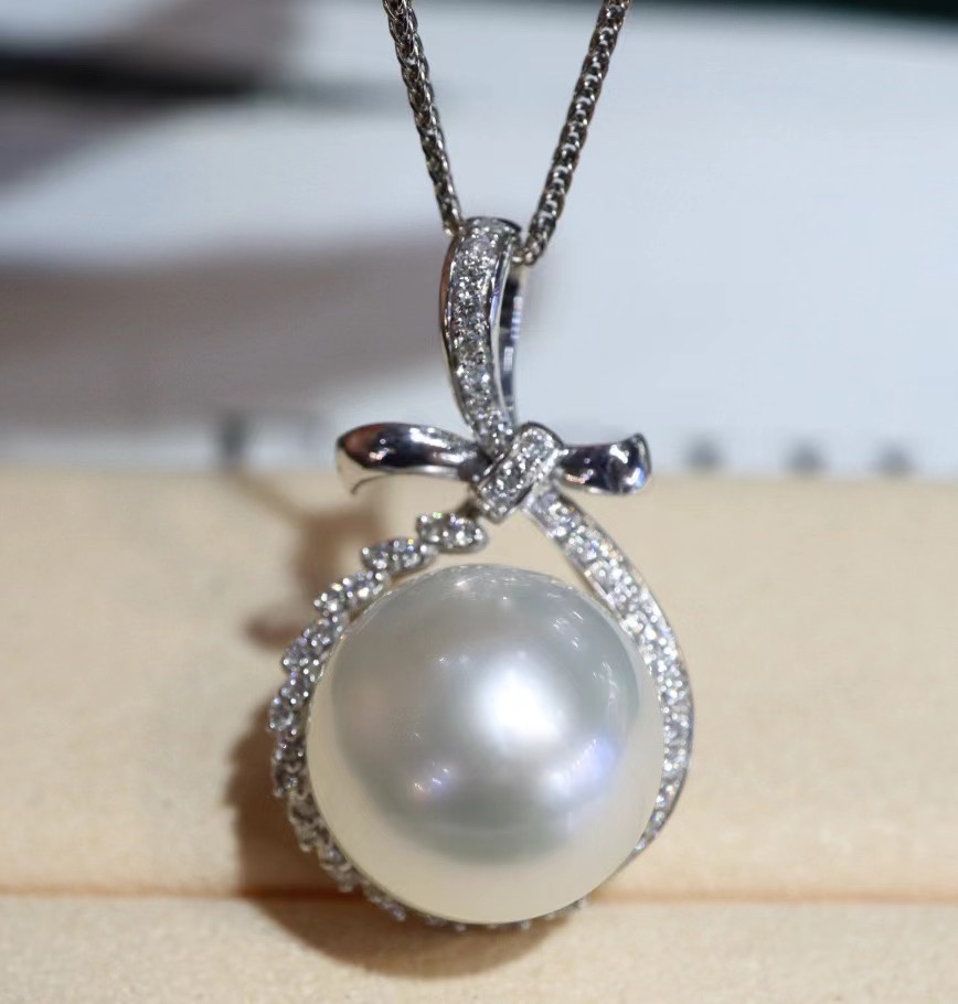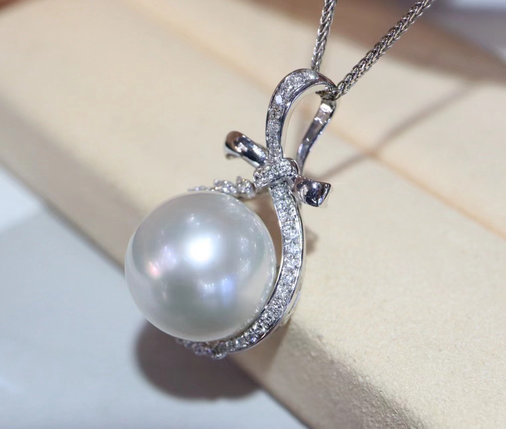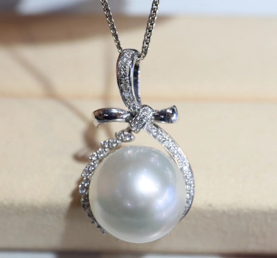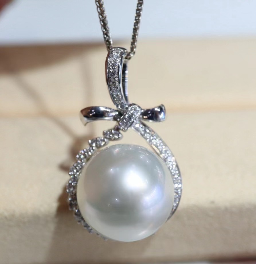 18K金钻石镶嵌,珠子正圆强光微瑕,珠光超亮冷白光,精致上档次