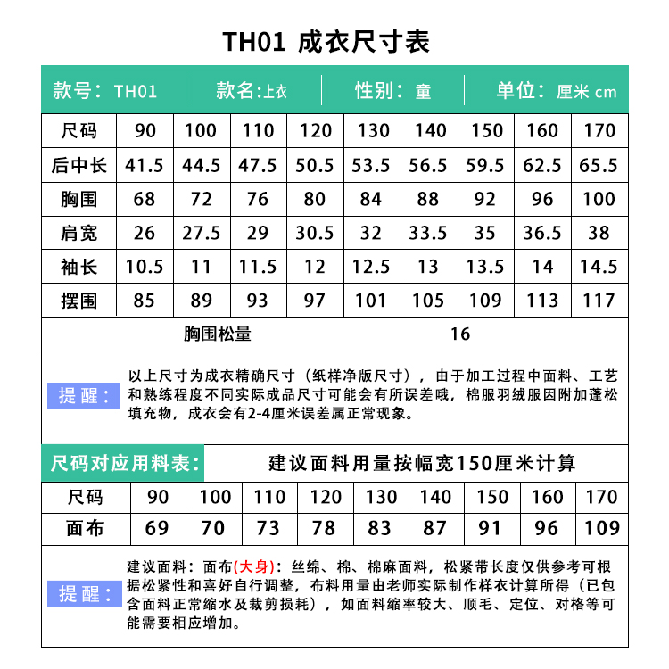 裁缝学苑TH01女童韩版童装女孩小飞袖上衣娃娃衫纸样衬衫打版裁剪