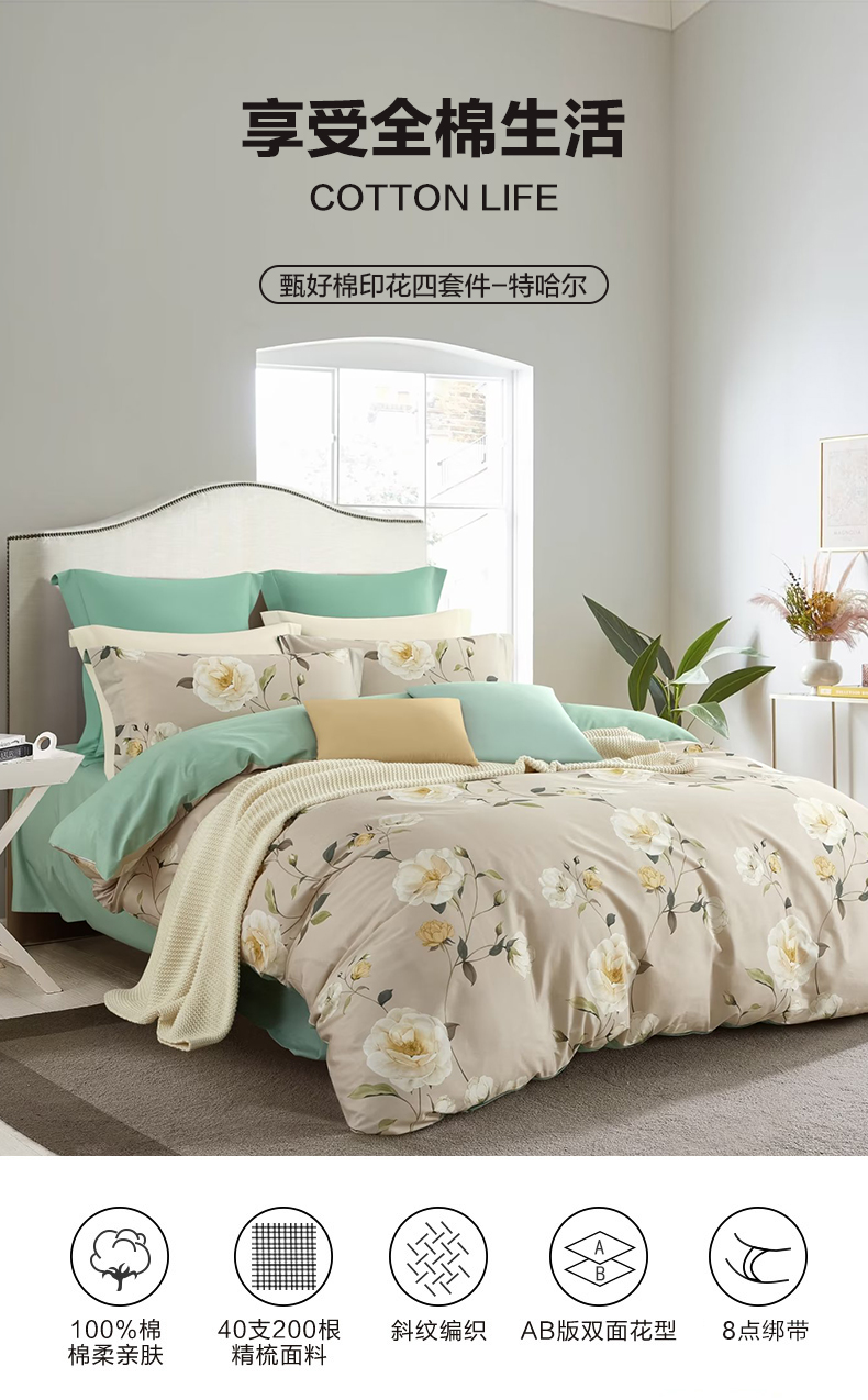 【云粉节】10楼 安睡宝 甄好棉印花特大四件套-克鲁姆 吊牌价1999元 活动价459元