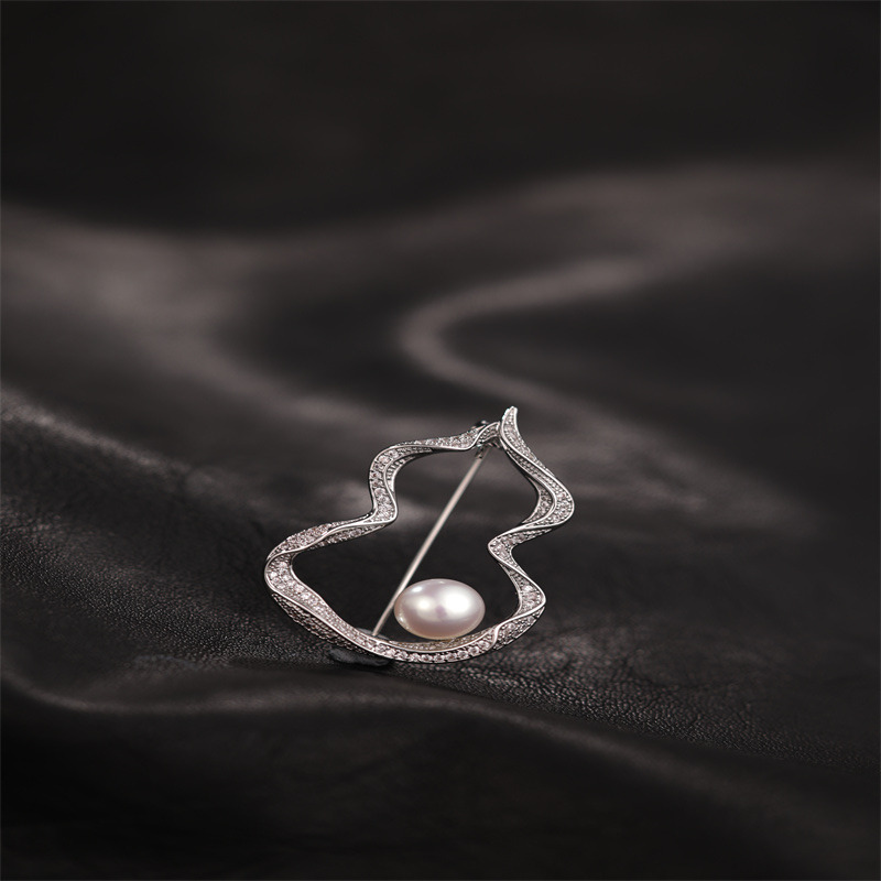 阮仕葫芦系列 合金 淡水珍珠胸针 8.5-9mm 扁圆 BHG14572HLWD