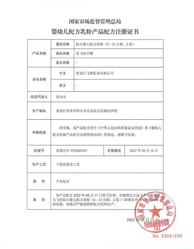 飞鹤星飞帆卓耀奶粉2段750g(6-12个月宝宝)