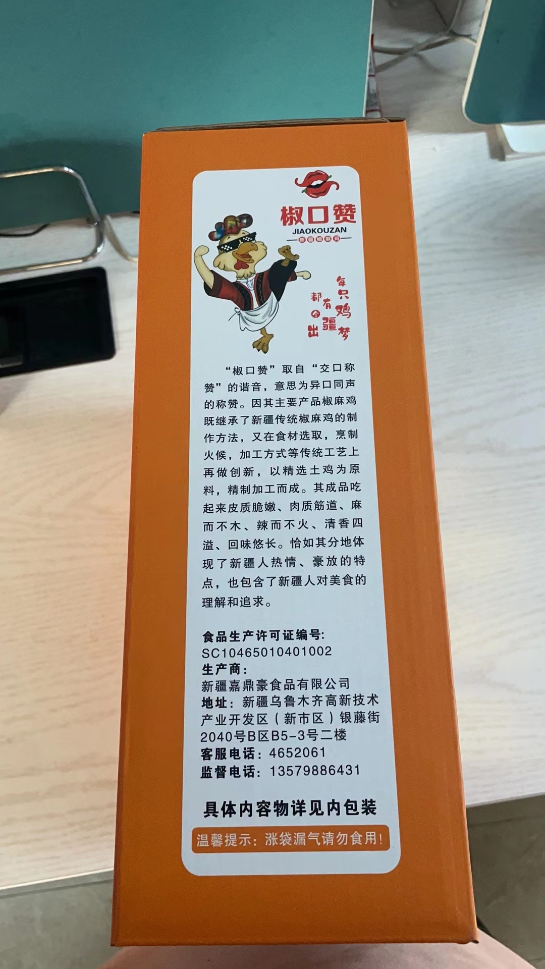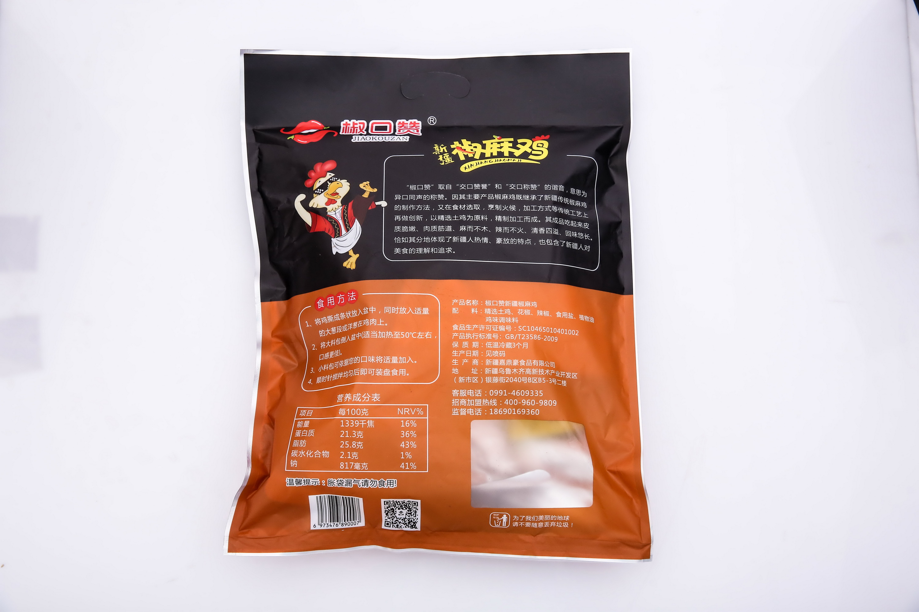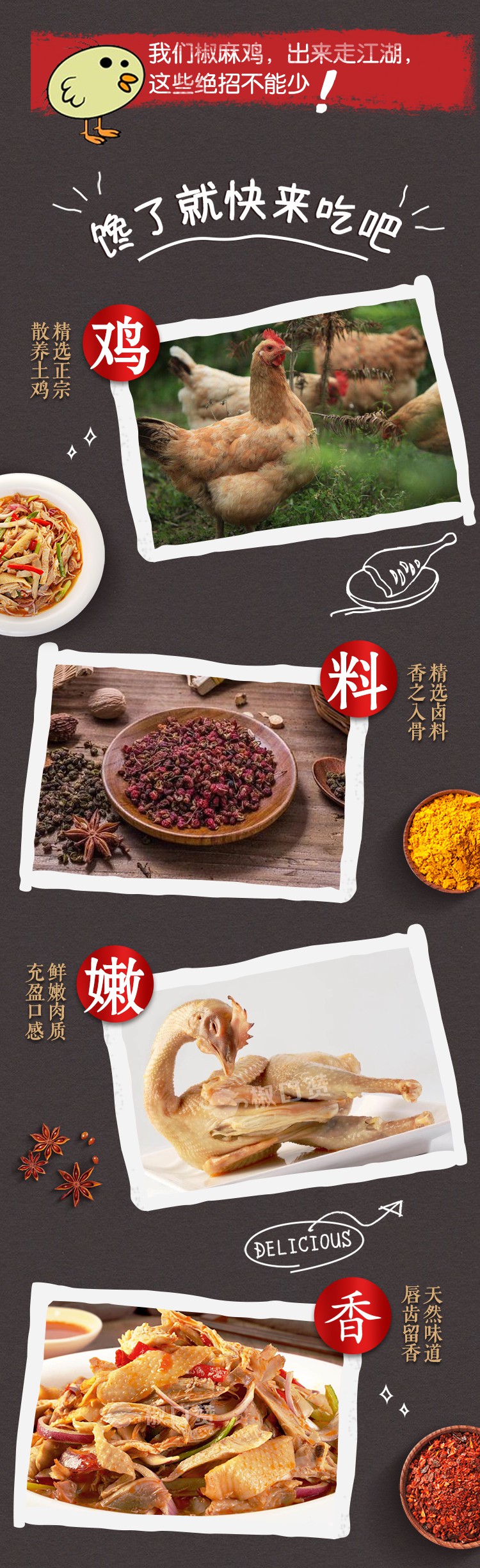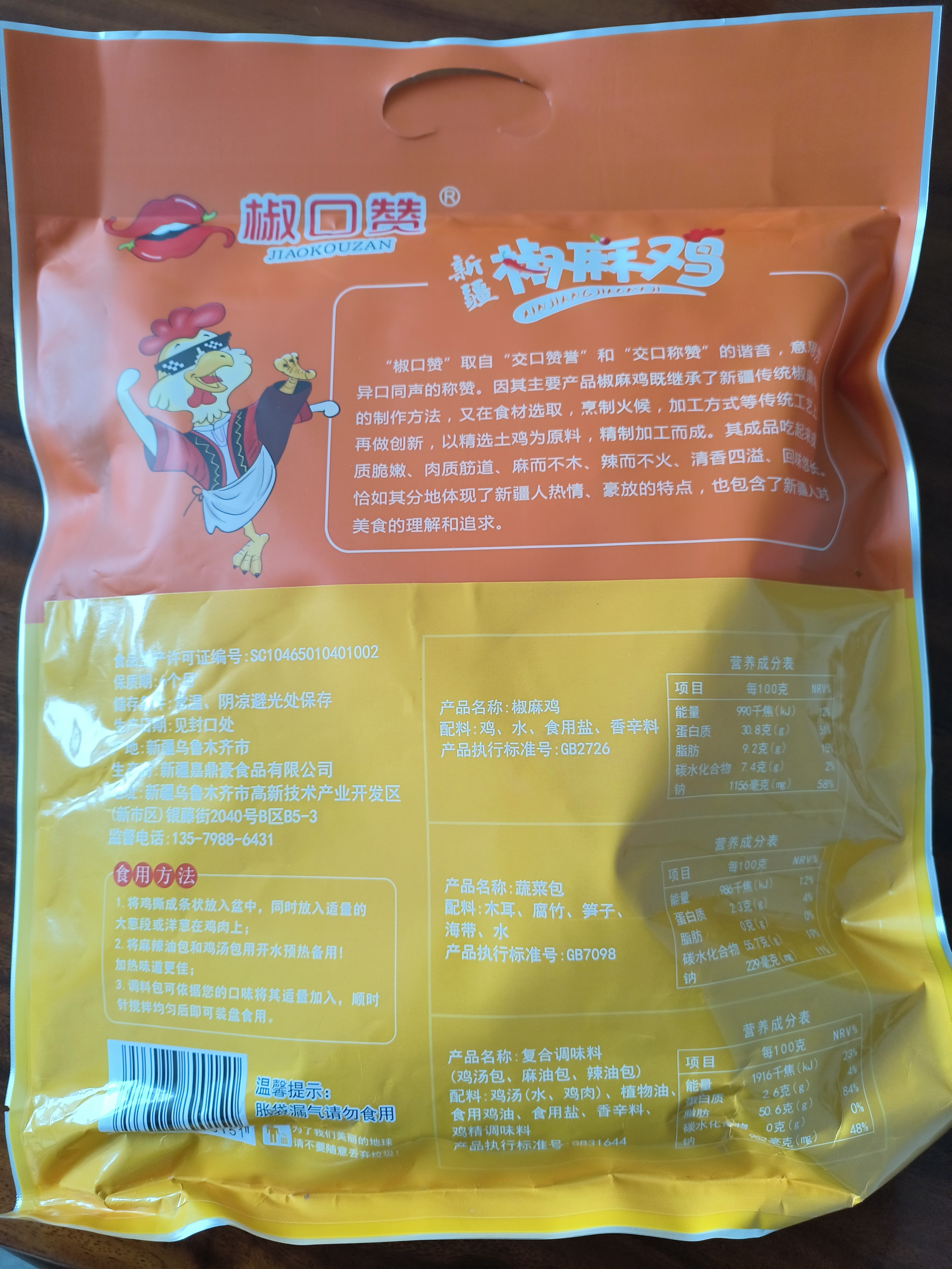 【配料表】1.5kg整只:精选土鸡、花椒、辣椒、食用盐、植物油、鸡味调味料