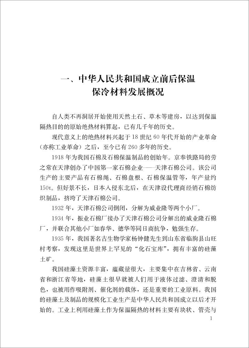 一、中华人民共和国成立前后保温保冷材料发展概况