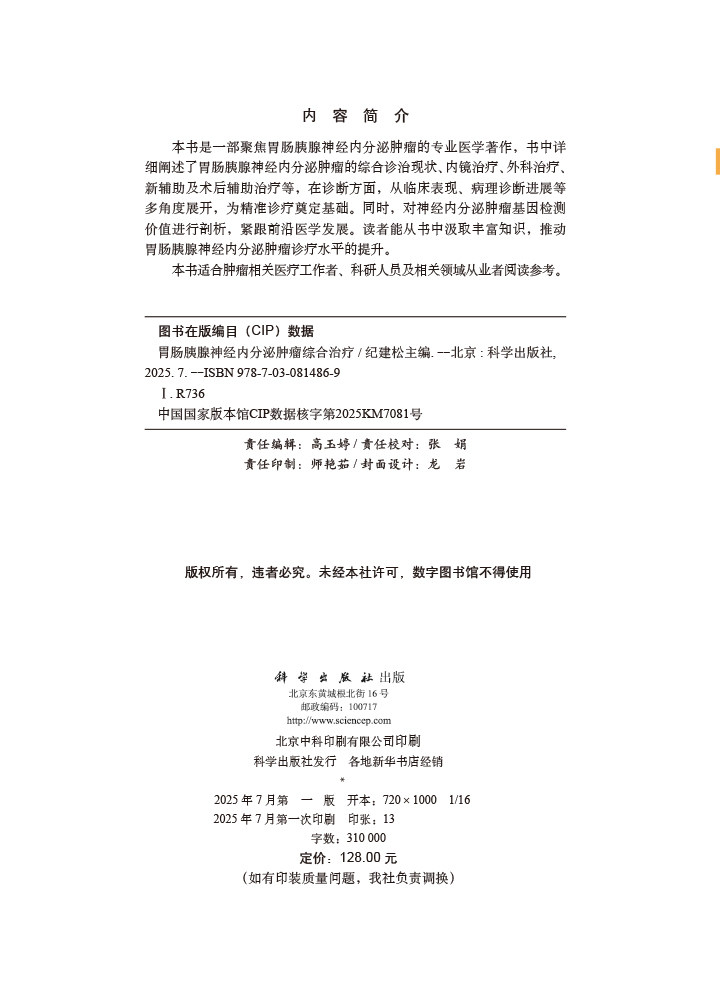 书名:胃肠胰腺神经内分泌肿瘤综合治疗