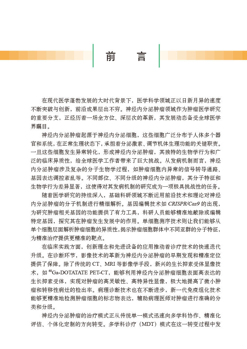 本书是一部聚焦胃肠胰腺神经内分泌肿瘤的专业医学著作,书中详细阐述了胃肠胰腺神经内分泌肿瘤的综合诊治现状、内镜治疗、外科治疗、新辅助及术后辅助治疗等,在诊断方面,从临床表现、病理诊断进展等多角度展开,为精准诊疗奠定基础。同时,对神经内分泌肿瘤基因检测价值进行剖析,紧跟前沿医学发展。读者能从书中汲取丰富知识,推动胃肠胰腺神经内分泌肿瘤诊疗水平的提升。
