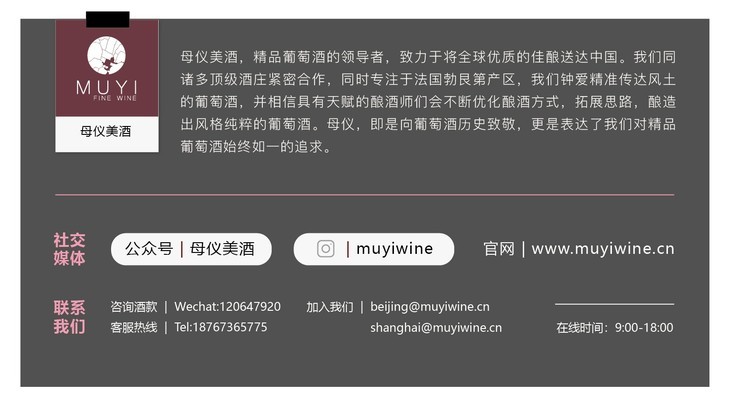 - 母仪美酒专注于勃艮第产区,并不断搜索其中瑰宝,以满足对精品葡萄酒日益增长的需求。我们的目标是为葡萄酒爱好者和酿酒师之间搭建桥梁,让充满酿酒师热情的佳酿找到他们的主人。