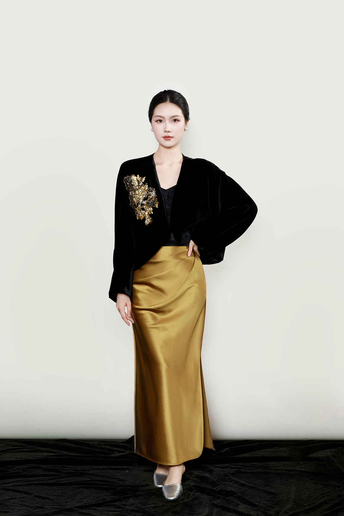 廷前观棠 | 金色抓褶半裙