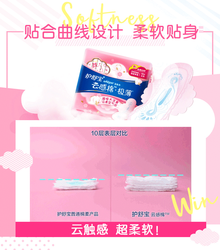 护舒宝 超薄日用 女学生 云感超净棉卫生巾 240mm 10片