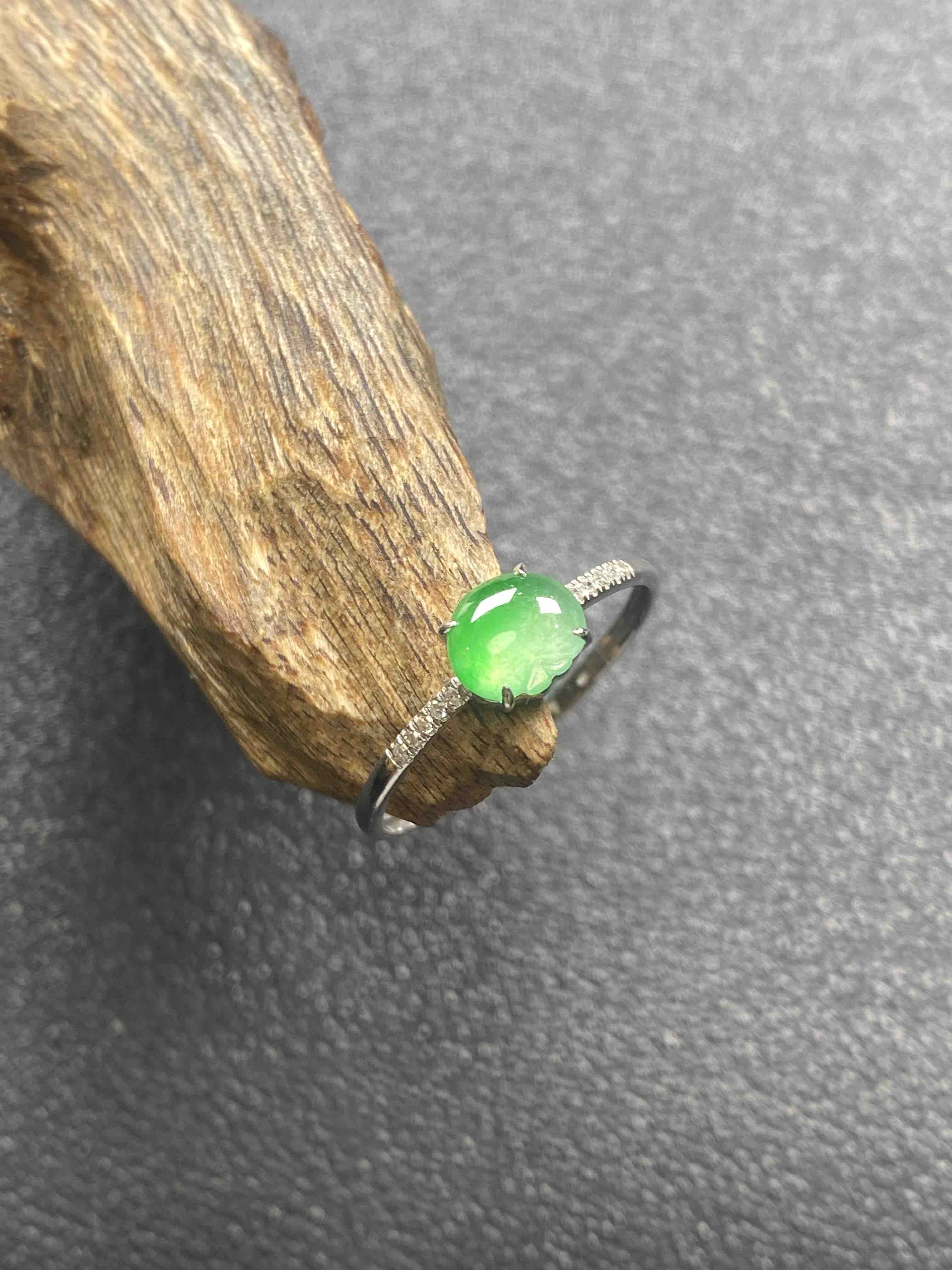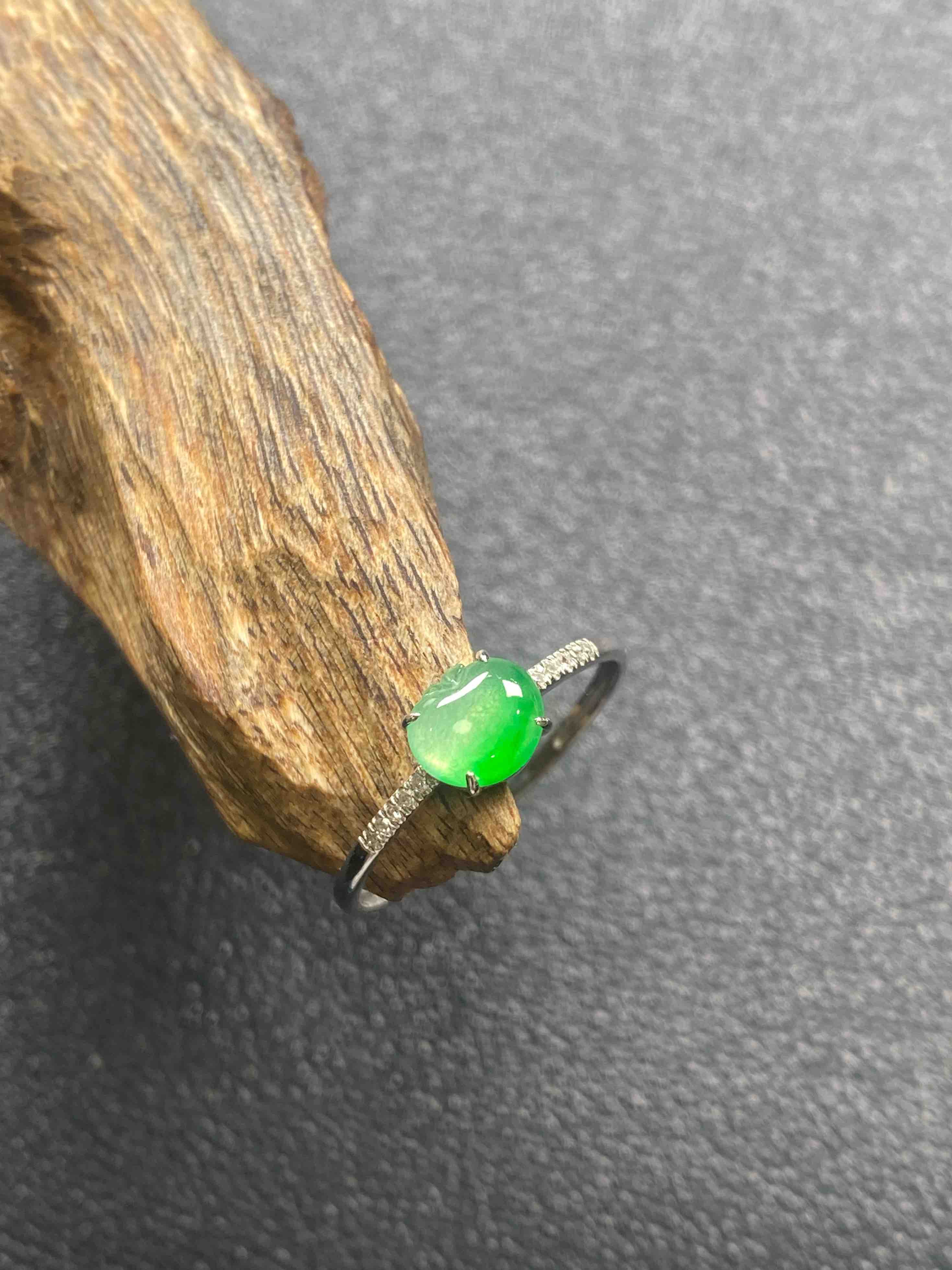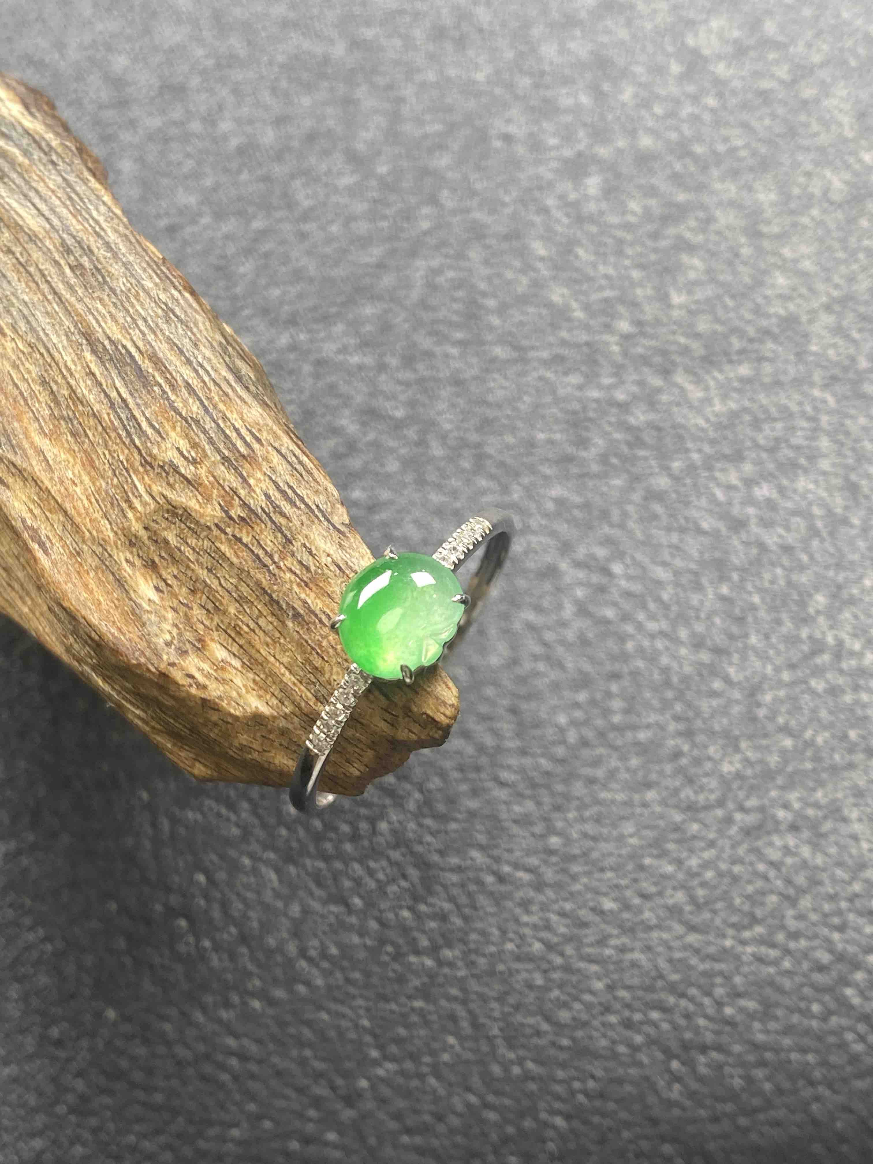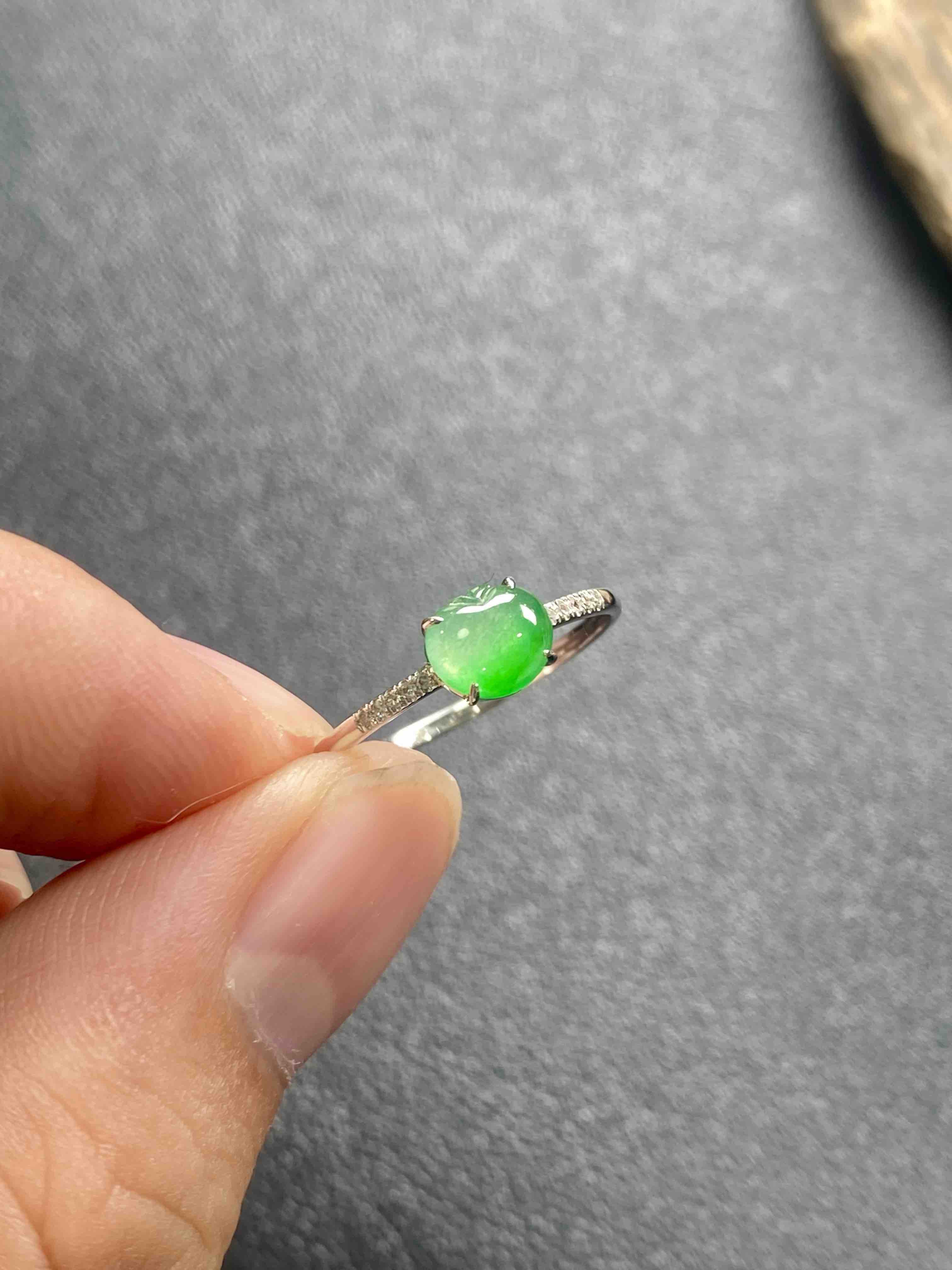 【FC0142】18K镶嵌翡翠阳绿小苹果戒指 色泽阳绿 水润起光 款式精美 圈口14 裸石尺寸:5.4*6.2*2mm 超值价💰2000