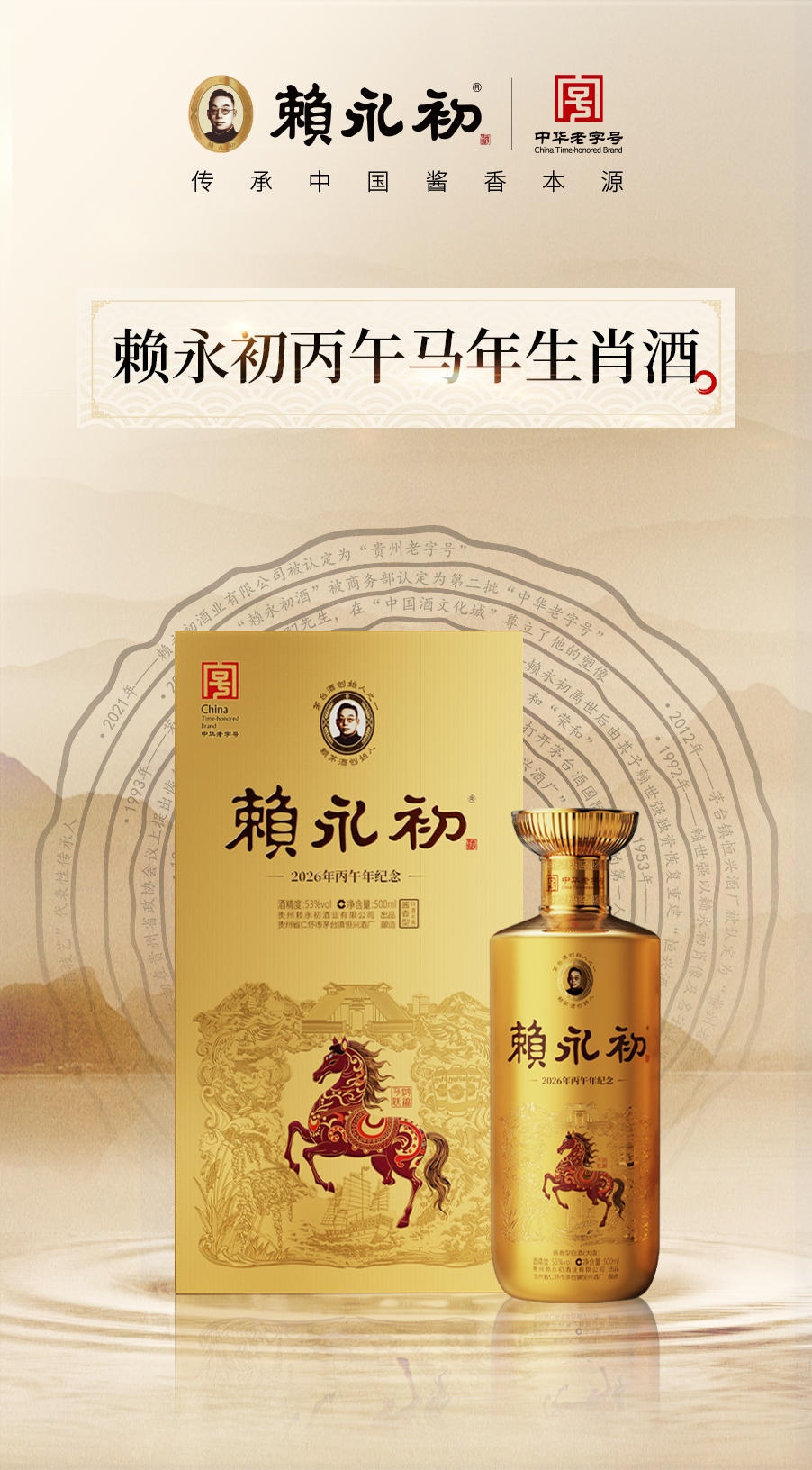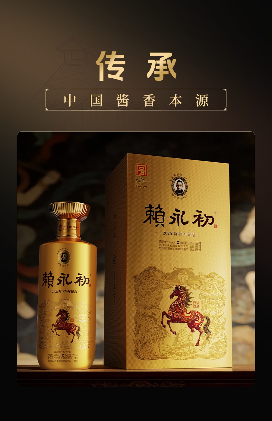 赖永初马年生肖酒500ml恒兴酒厂酱香型白酒53度酱香经典高端礼盒
