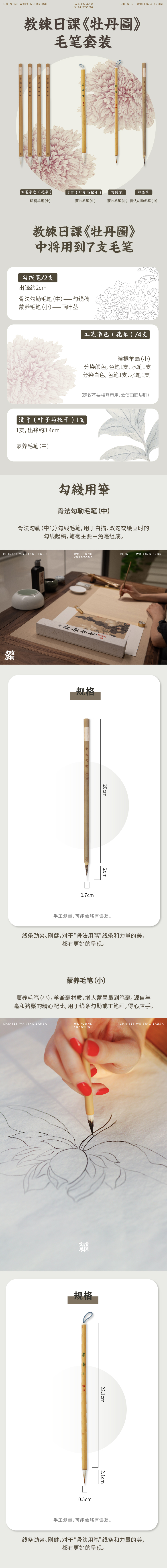 暄桐文房 教练日课 【牡丹图】毛笔套装