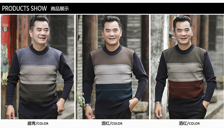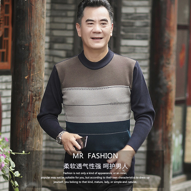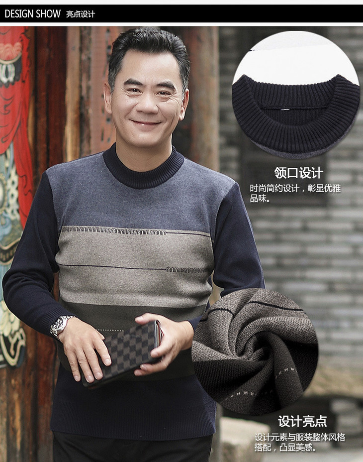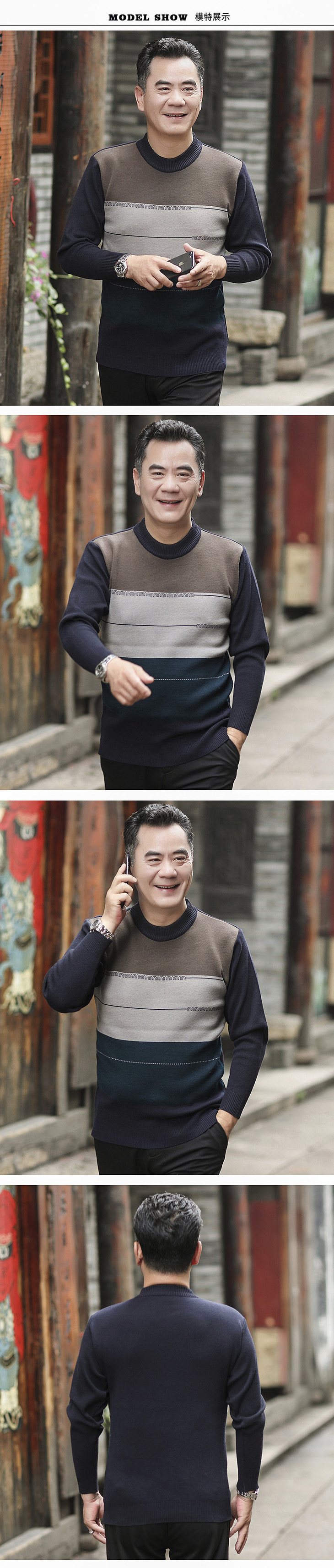 【毛衣】*中年男士加厚毛衣商务休闲男装爸爸圆领针织衫中老年羊毛衫男