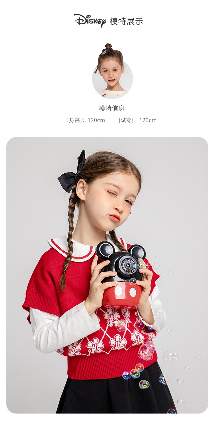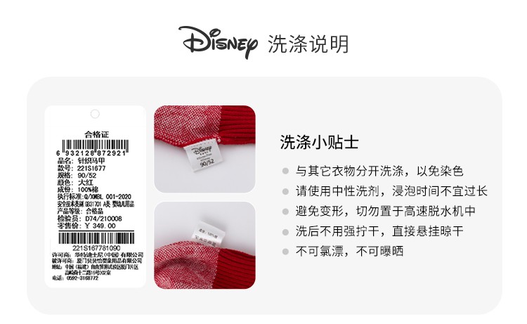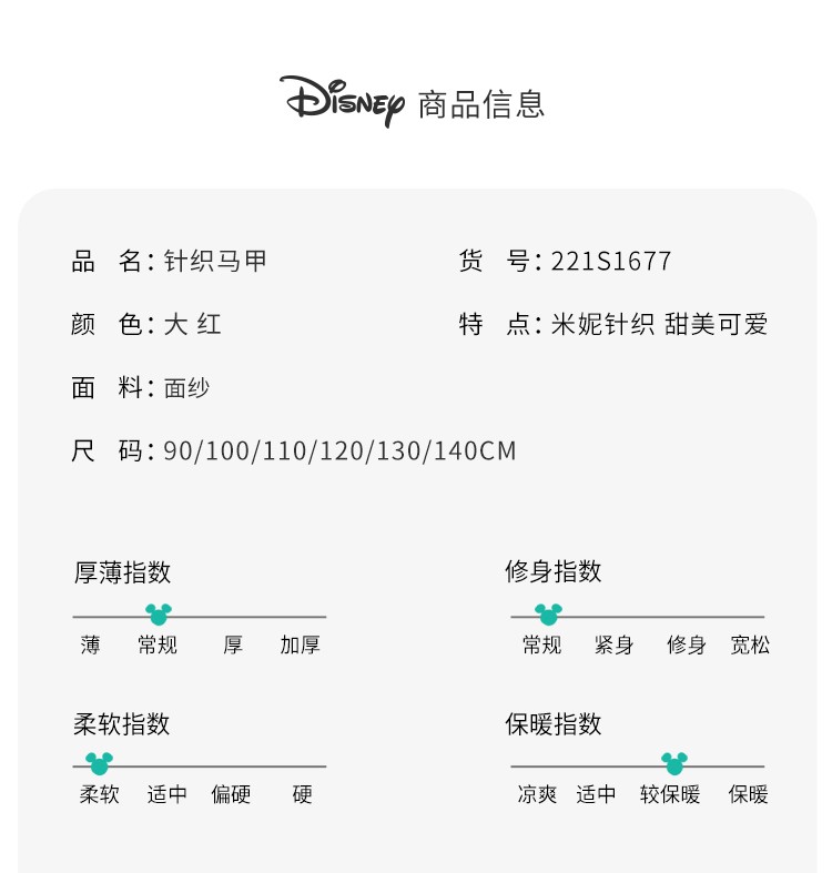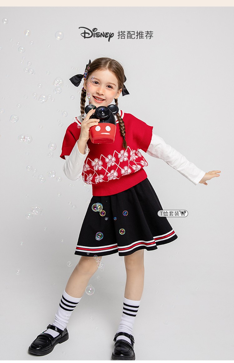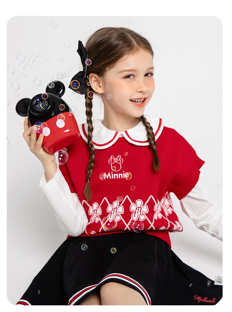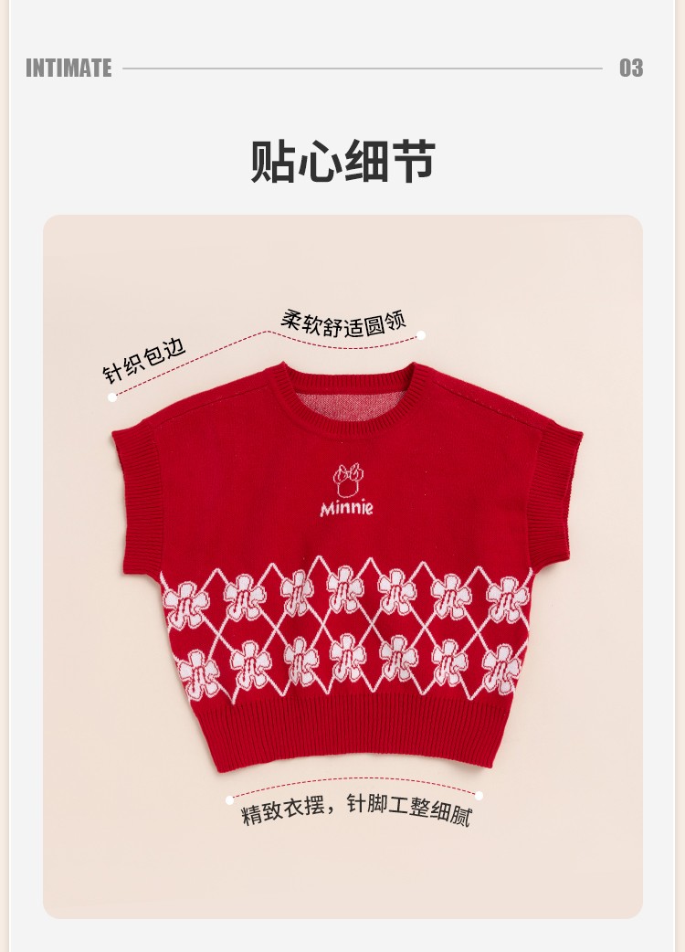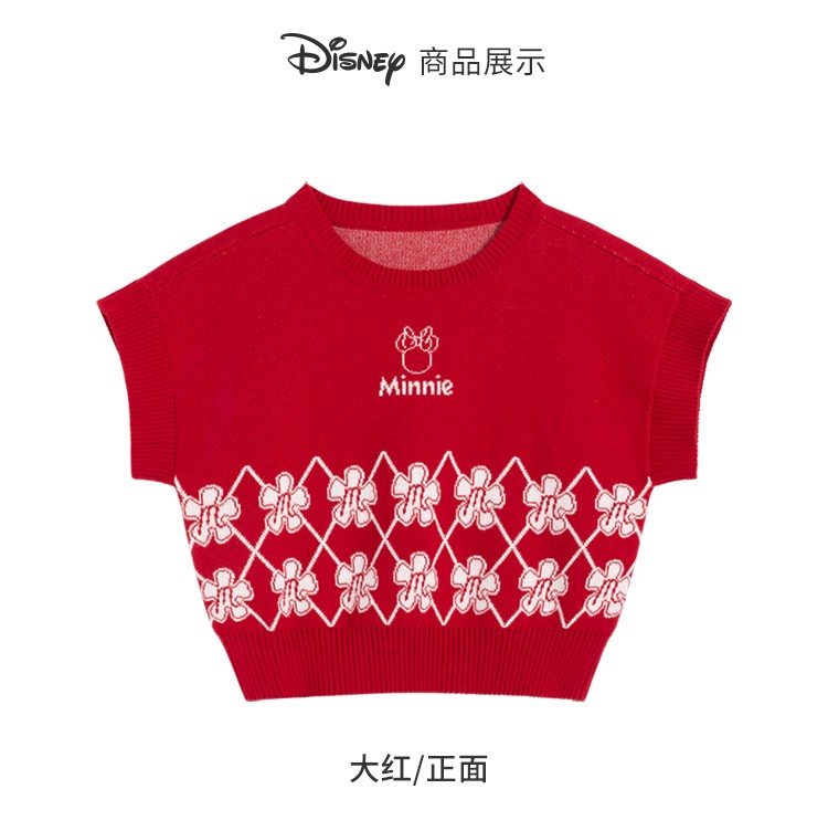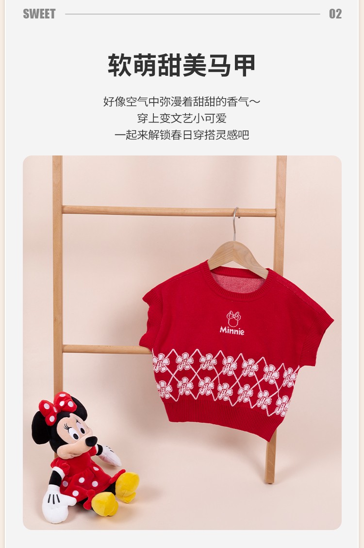 迪士尼童装女童马甲春日限定款萌趣米妮针织马甲春新品