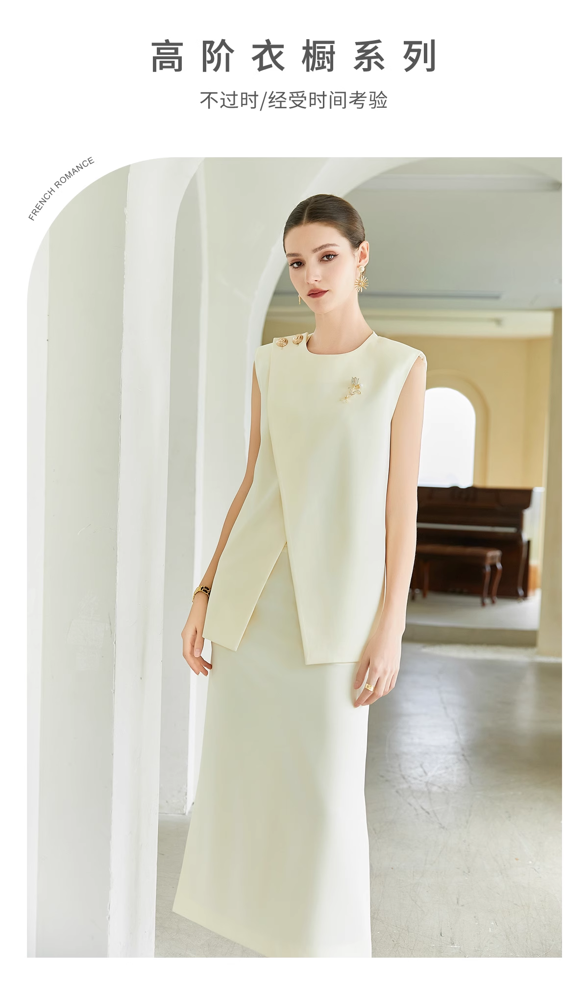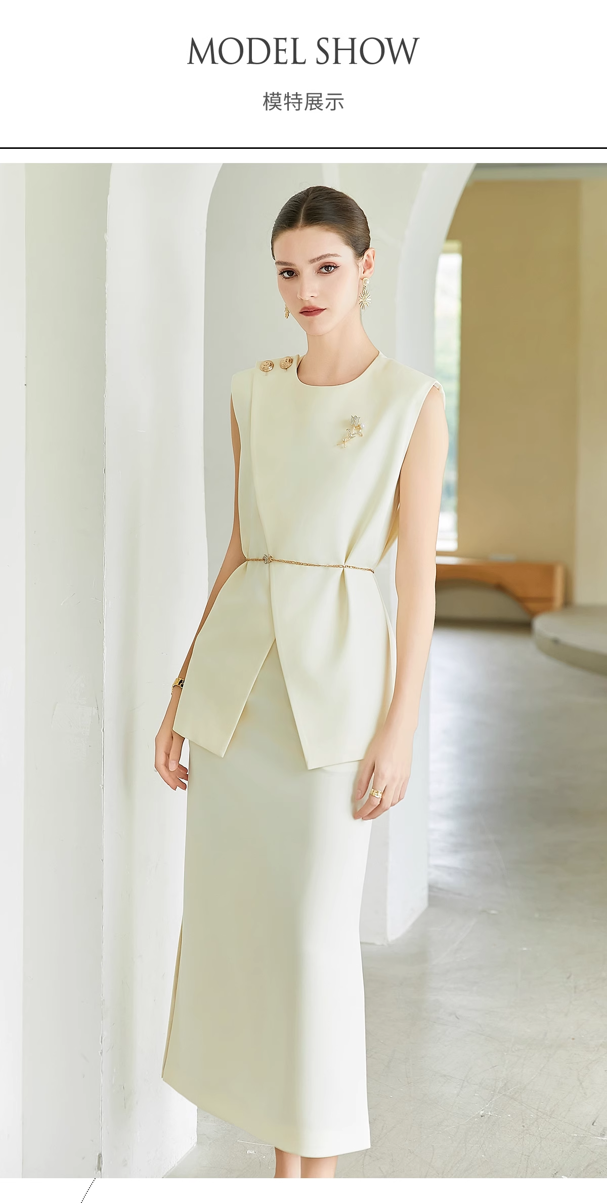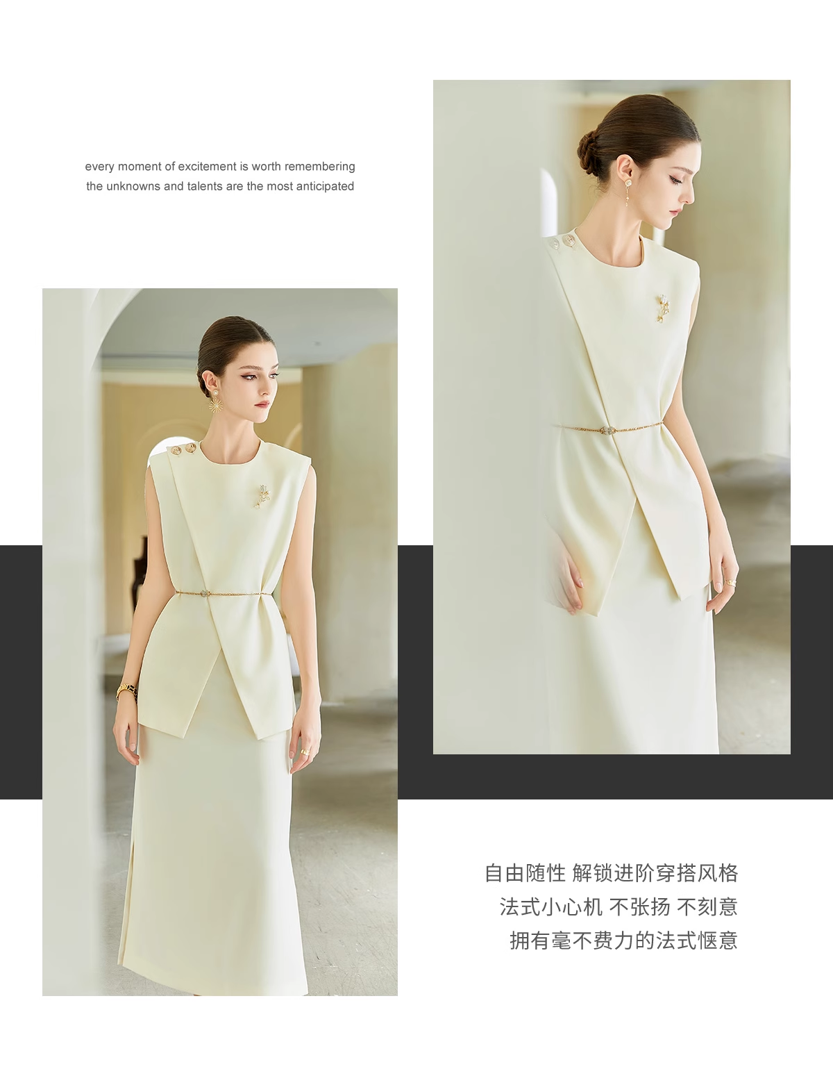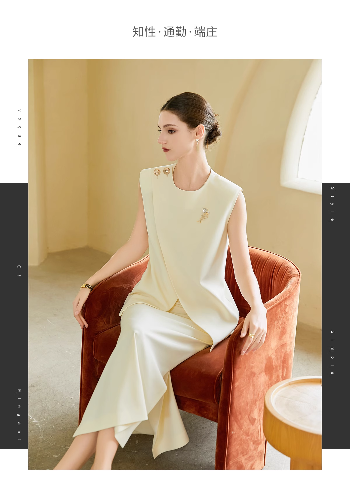 AD浅色职业装气质女神范西装套装女高端无袖宽松上衣轻熟风两件套