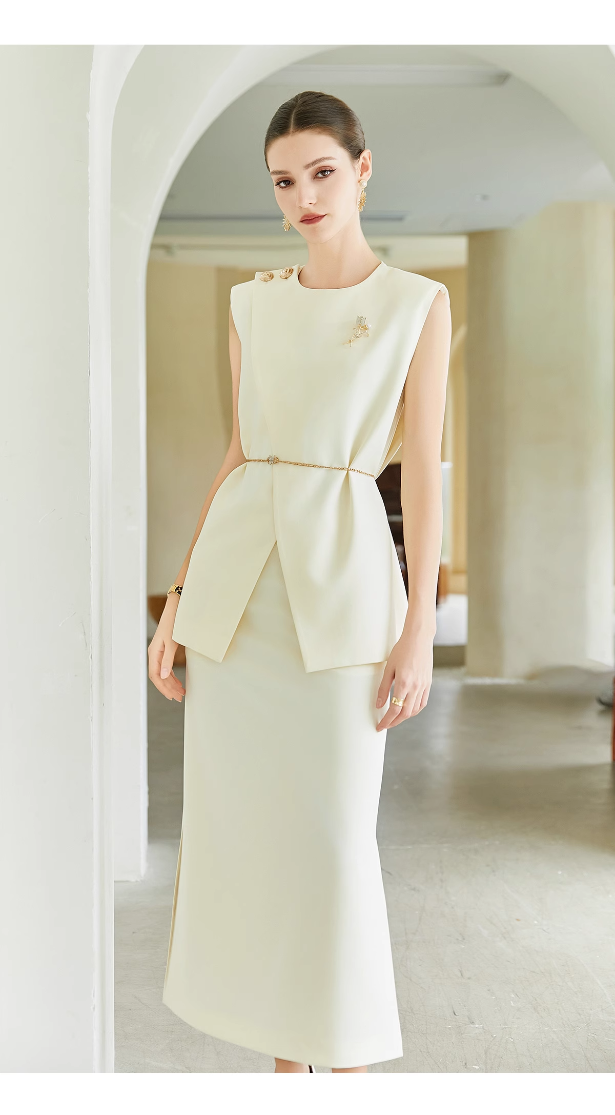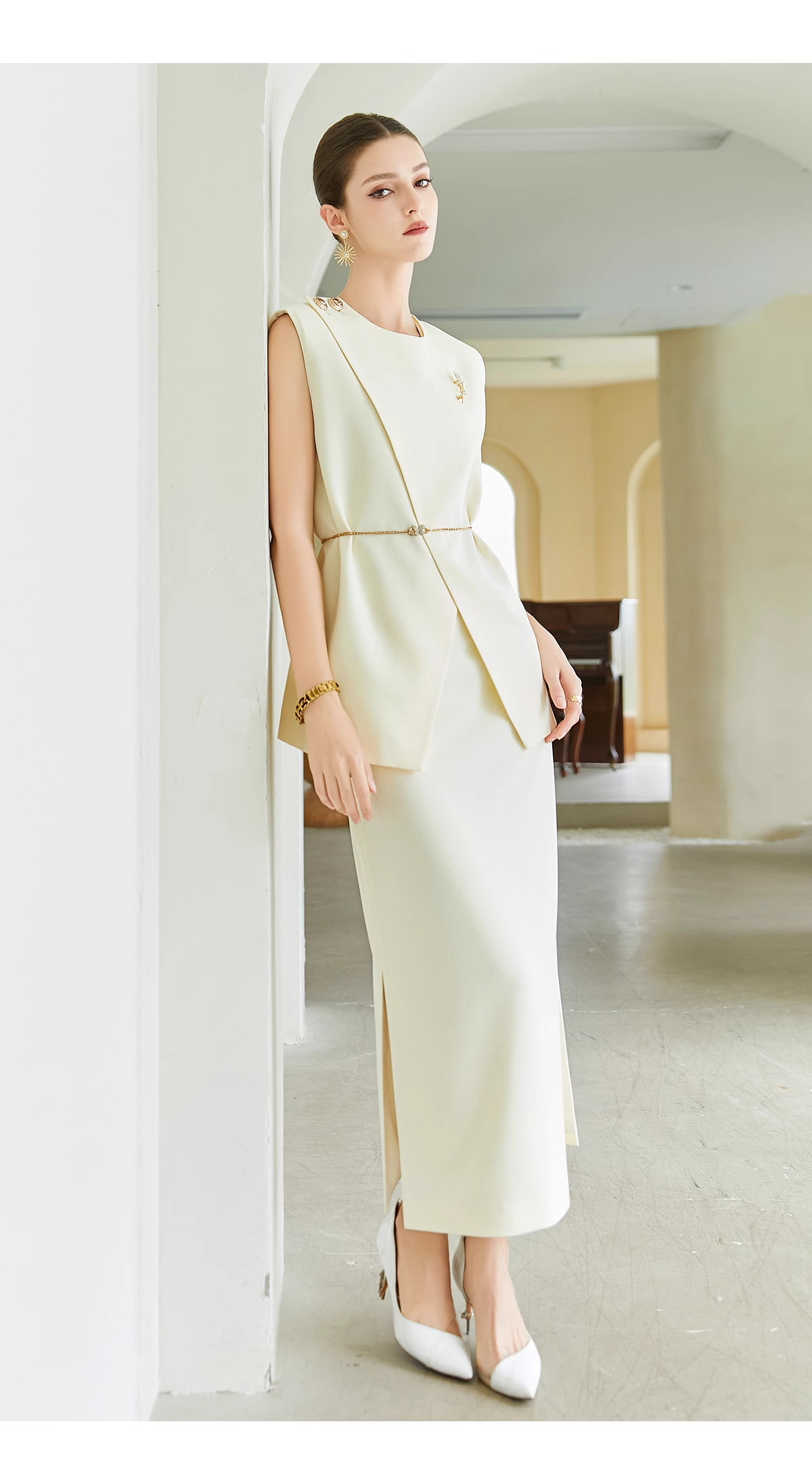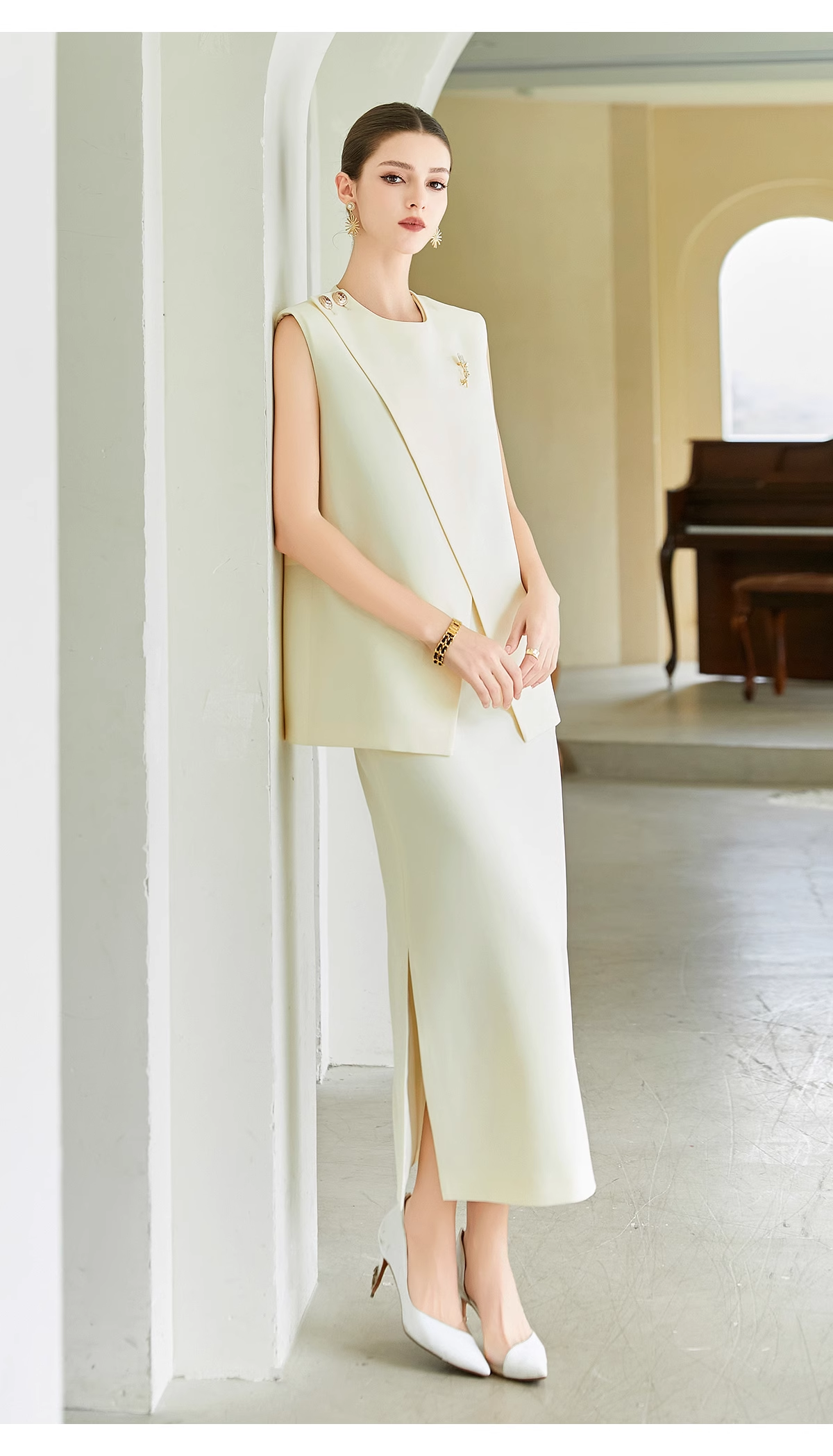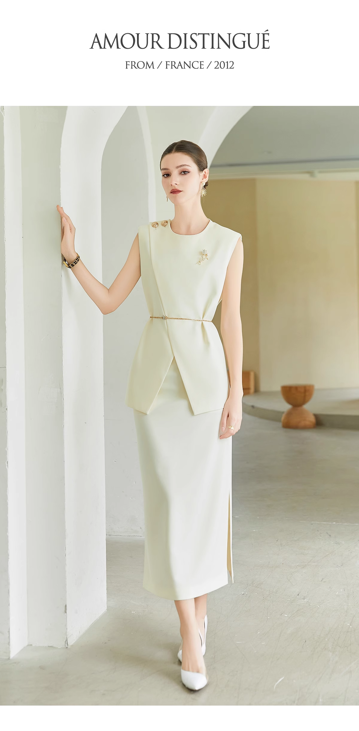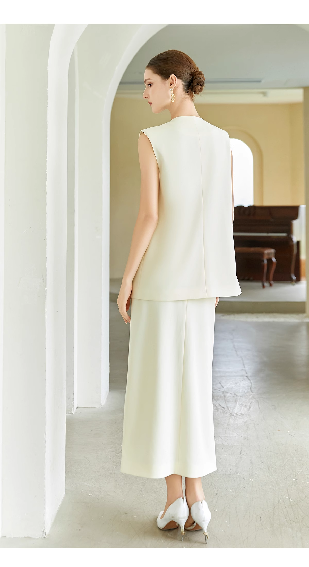 AD浅色职业装气质女神范西装套装女高端无袖宽松上衣轻熟风两件套