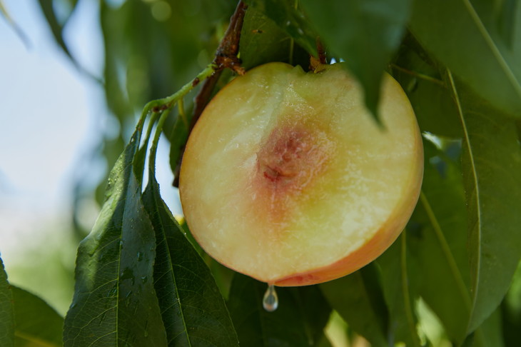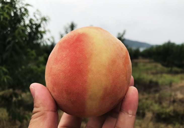 由于种得开阔,桃子平均接受阳光的程度更好,所以不仅糖度平均,而且甜度更高,色泽度好。