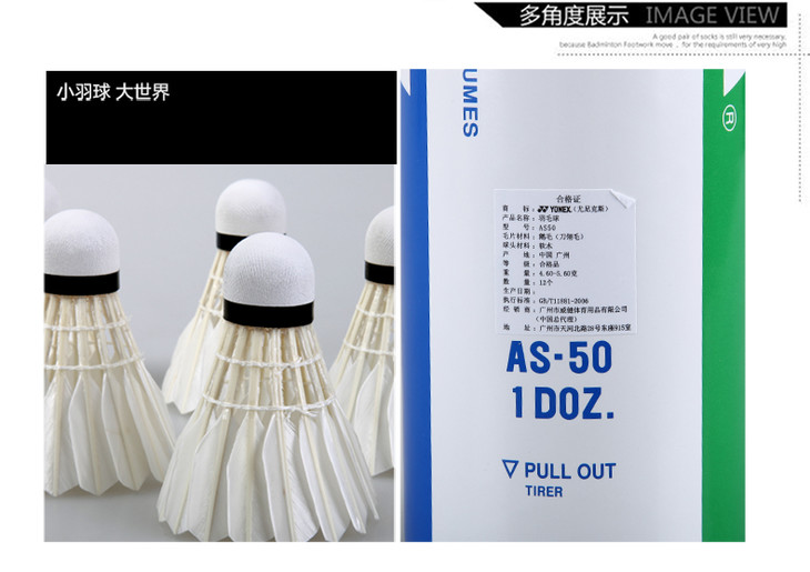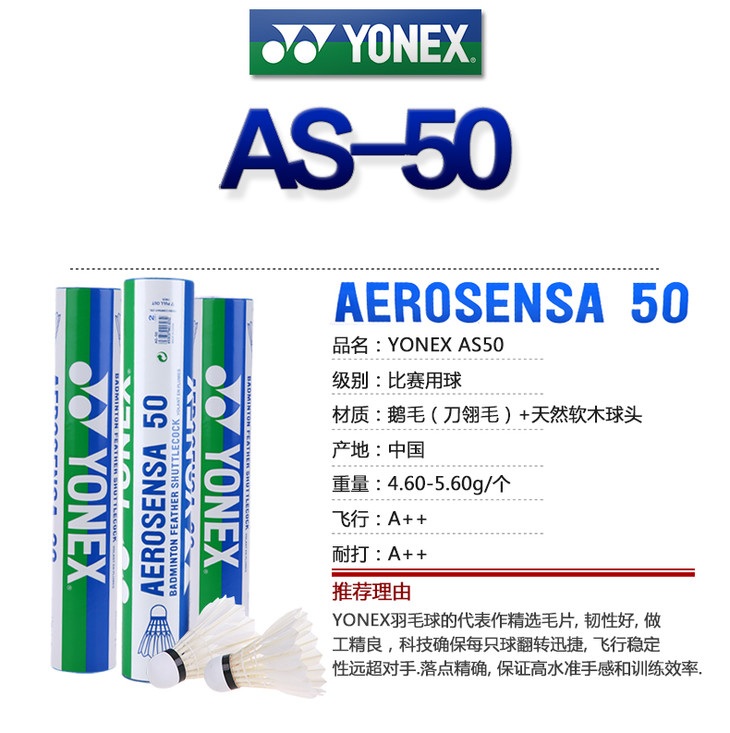 YONEX AS-50 羽毛球 软木球头 稳定耐打 精选鹅毛
