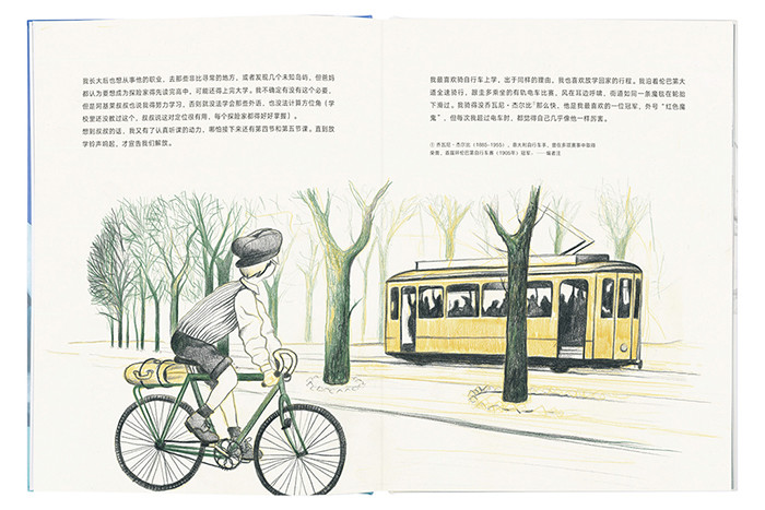 同一系列的《发明零的孩子》与《追逐潮汐的孩子》,均为带有科普基因的文学作品,旨在帮助小朋友带着好奇心轻盈地跨过知识的艰涩。与前两本油画般质感的画作不同,意大利插画家卢卡·卡伊米为本书绘制的插图以丙烯和粉彩为主,色彩明快、淡雅,笔触脉络清晰可见。为体现画作特点,本书采用了一款新的特种纸。作者恩里科·布里齐为意大利著名作家,著有多部小说及旅行文学作品。