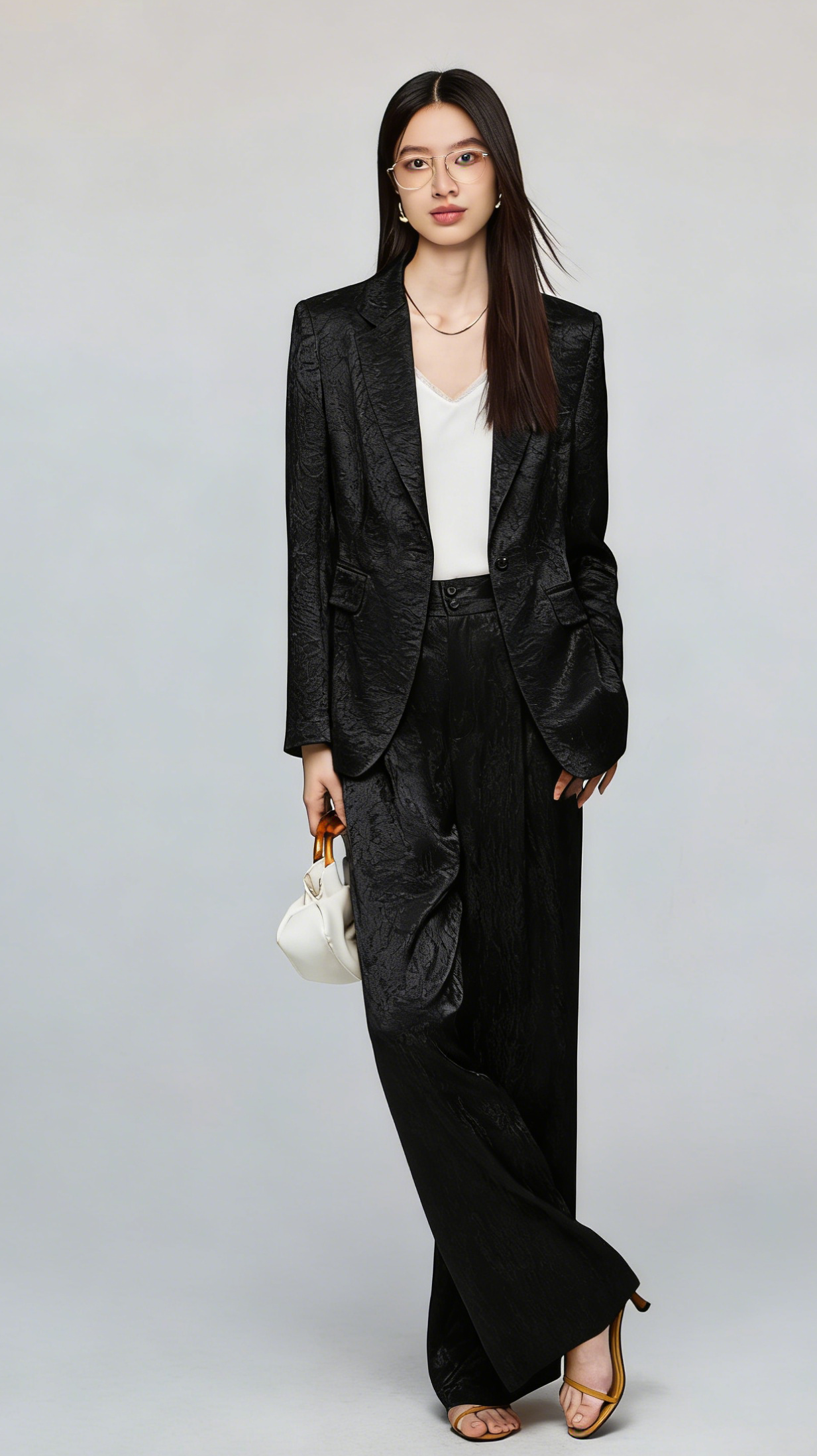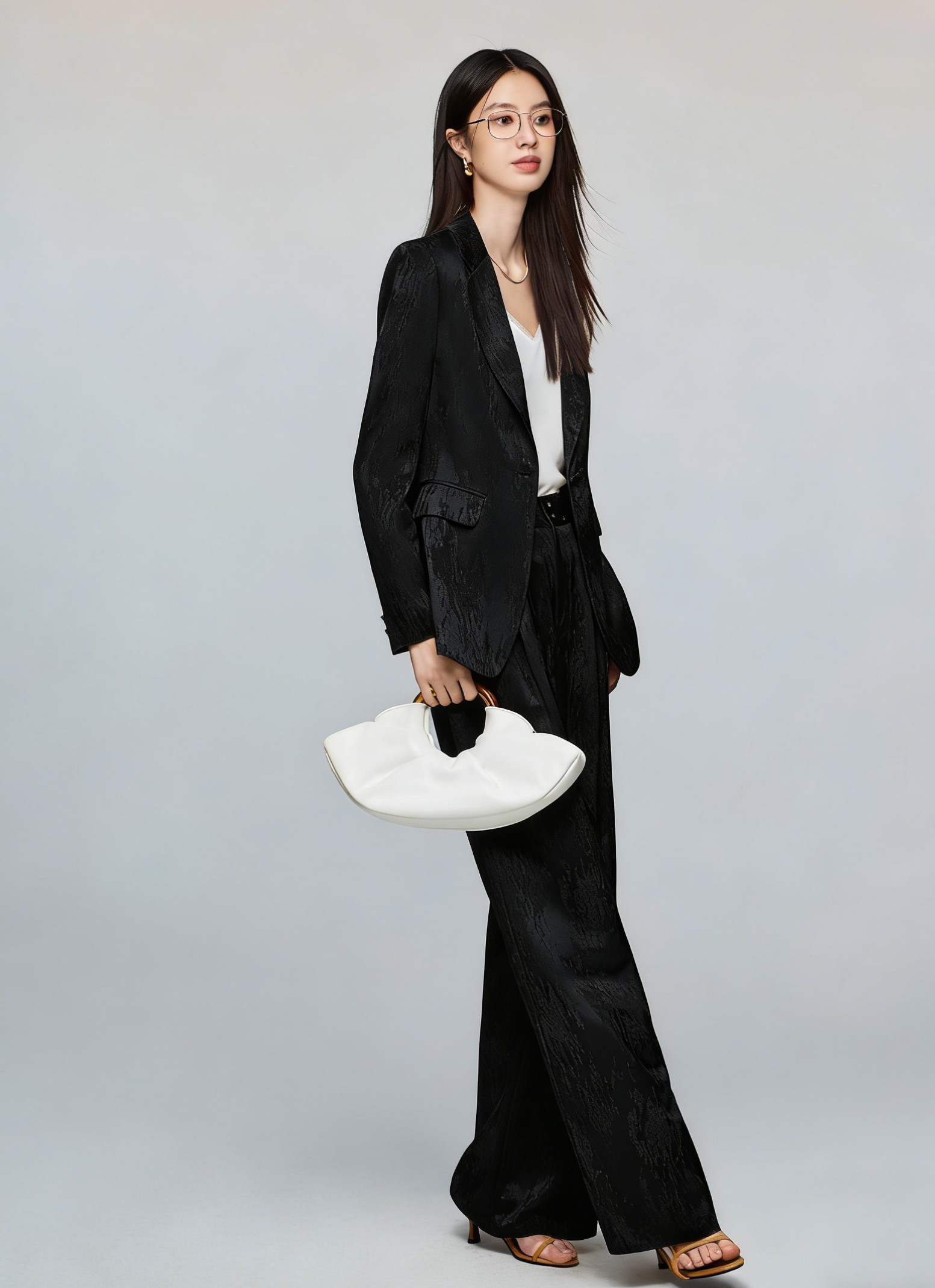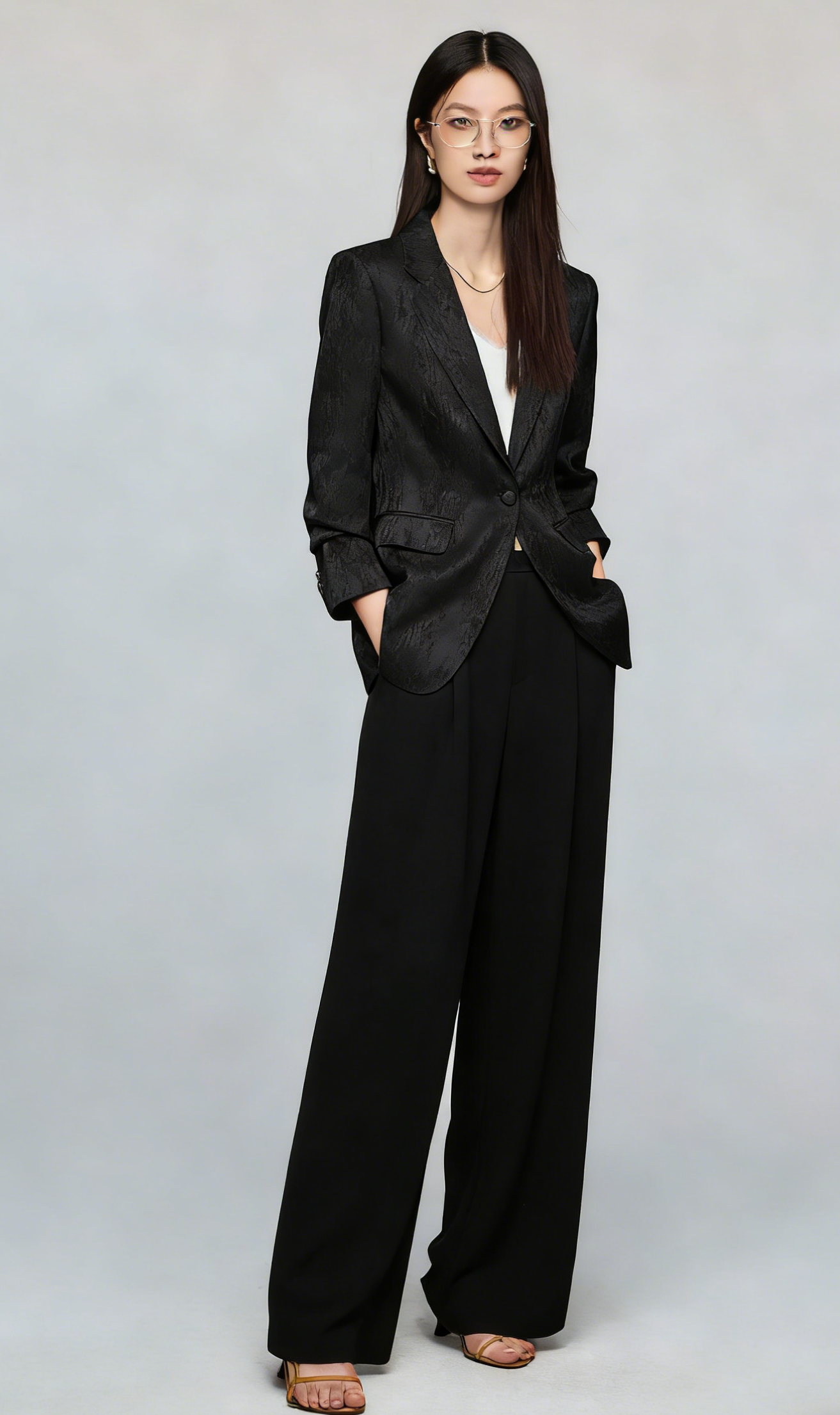 SC1A05_漆黑色_上衣外套_春秋_翻领暗纹提花肌理感收腰西装_高级女装_BERNIEELEN 伯妮斯茵