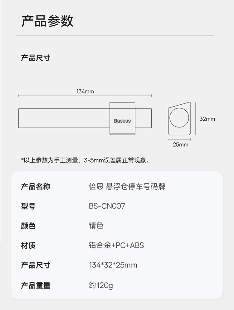 倍思 悬浮仓停车号码牌