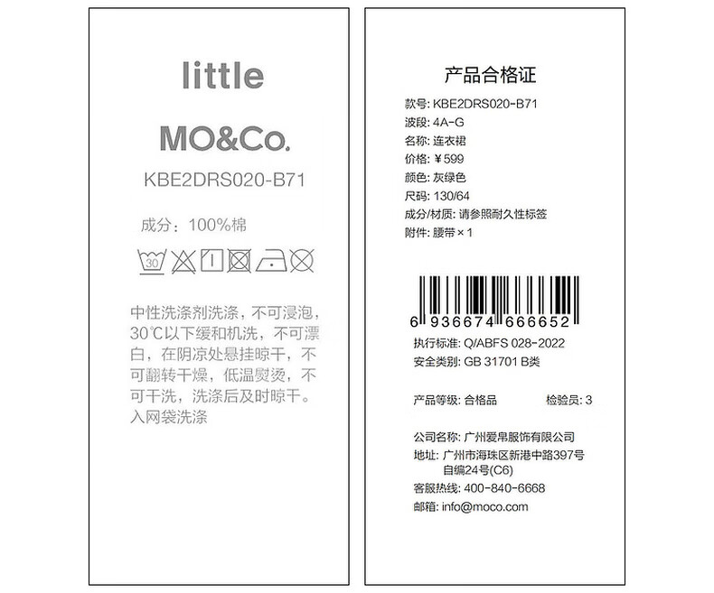 【5F】little MO&Co.little moco童装25夏装女童纯棉工装短袖连衣裙亲子装