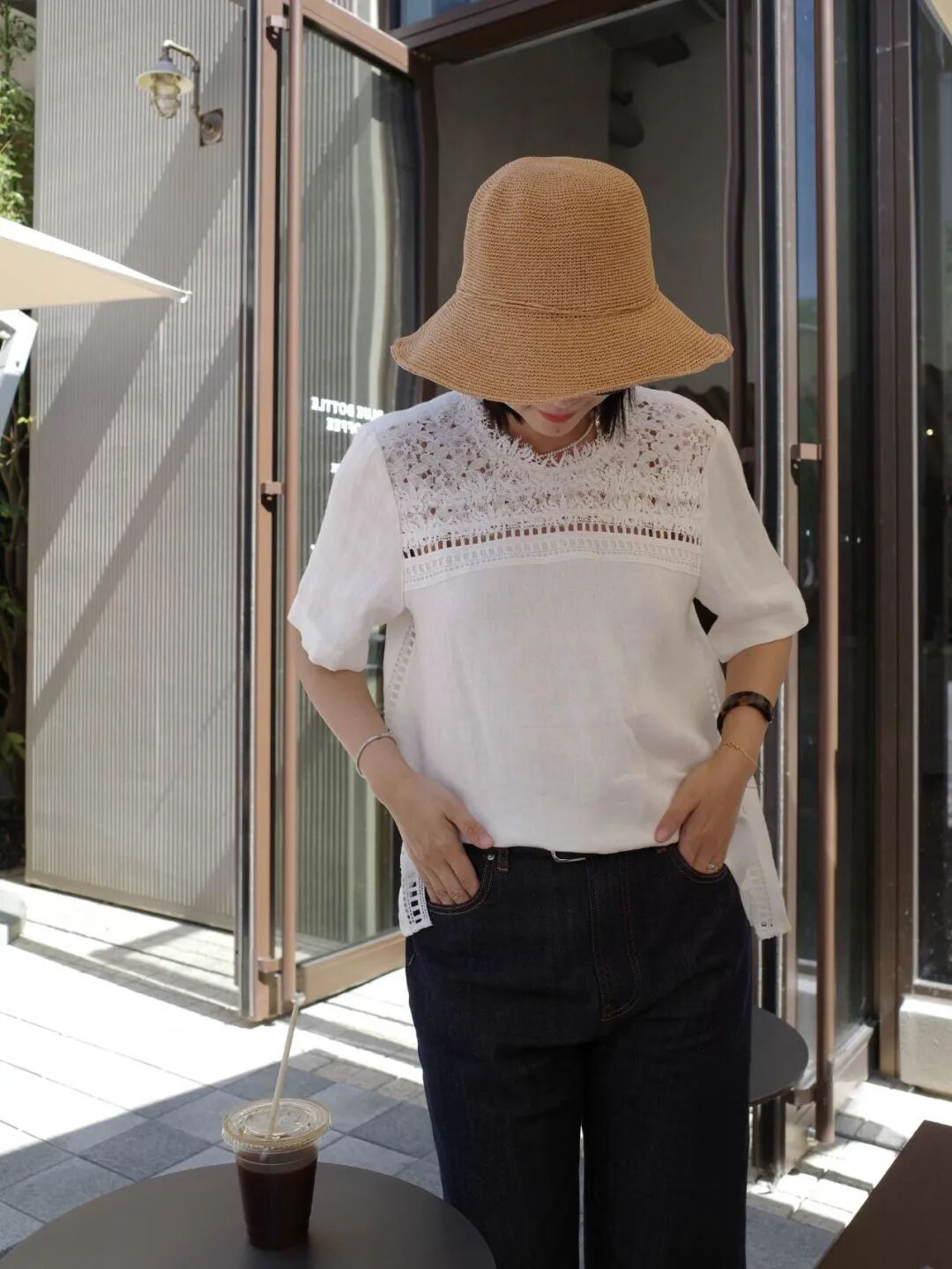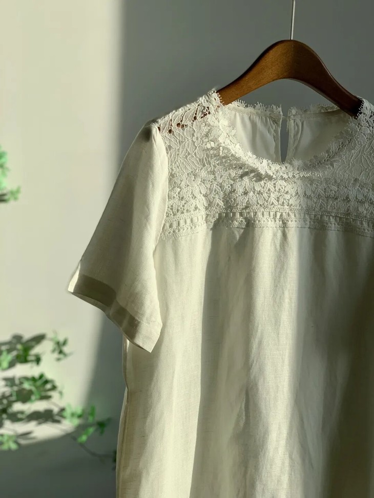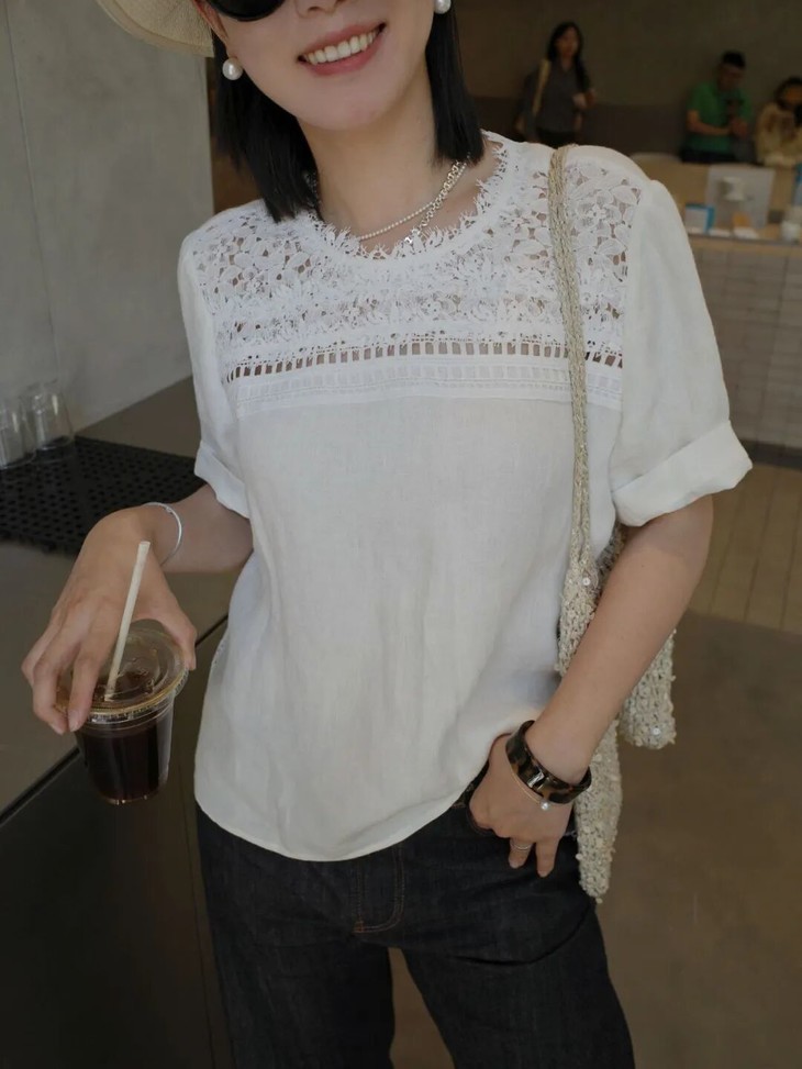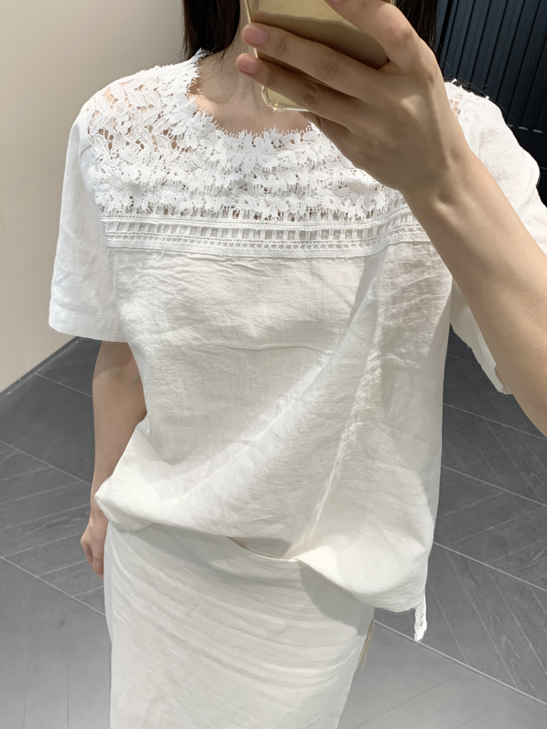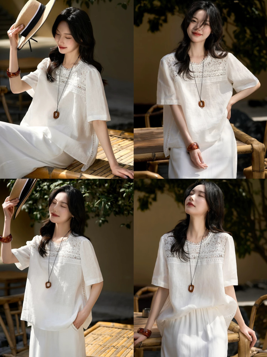 款式二:重工蕾丝苎麻棉短袖 面料:80%苎麻、20%棉 颜色:月光白 尺码:M、L、XL |