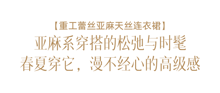并带来今年春夏两款“不易皱”的亚麻系列时尚单品:一款是天丝亚麻连衣裙,另一款则是重工蕾丝苎麻棉短袖。