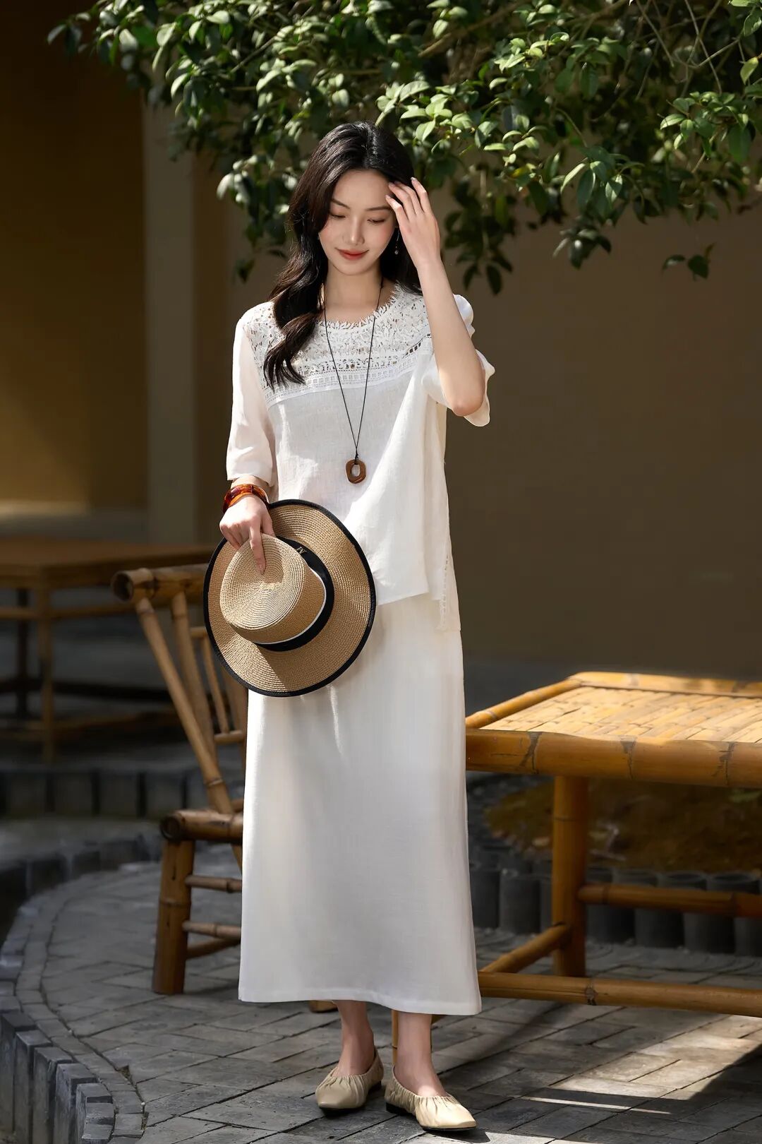 Meline Kaylin「一生浮梦」亚麻天丝短袖/连衣裙,南法假日风,在极简与极繁间成就的高级感【3-5天发货】