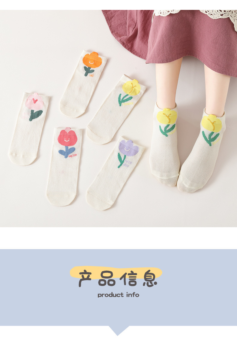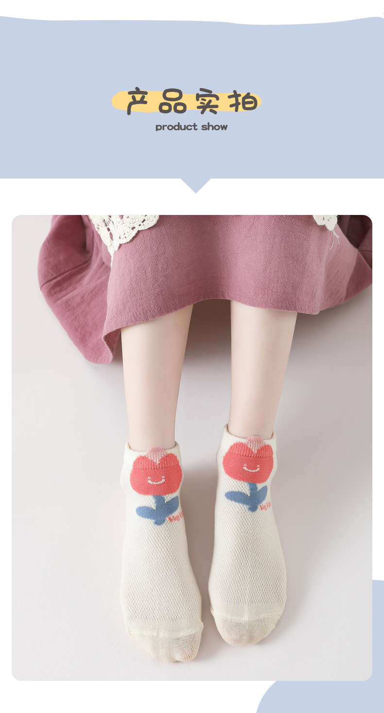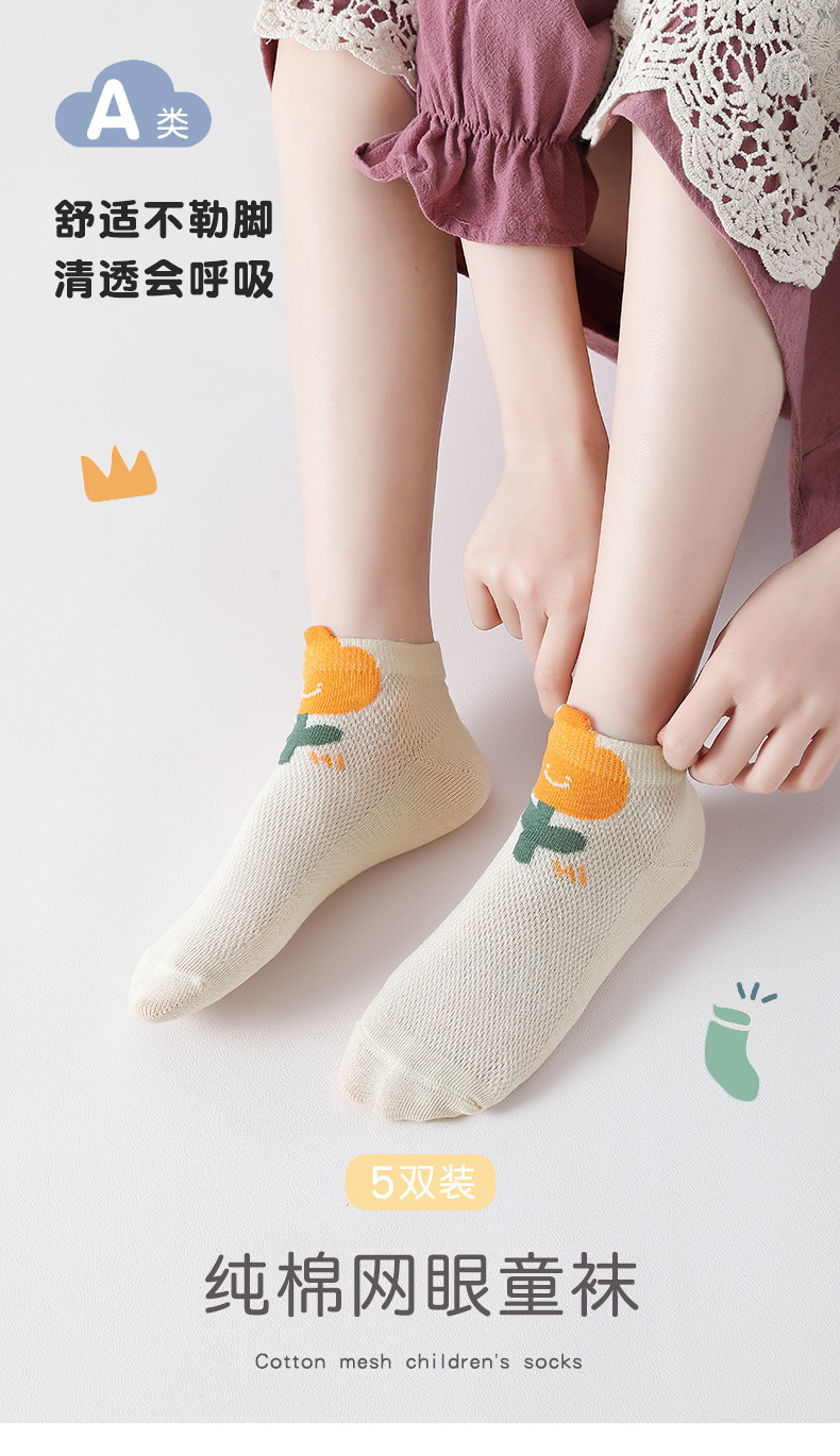 【五双装!纯棉网眼童袜】儿童袜子春夏季网眼薄款棉男女童可爱中筒短袜