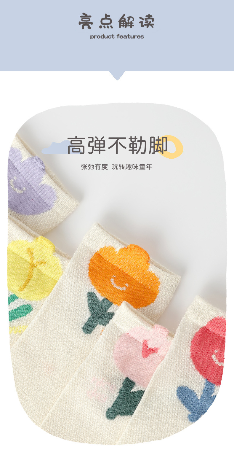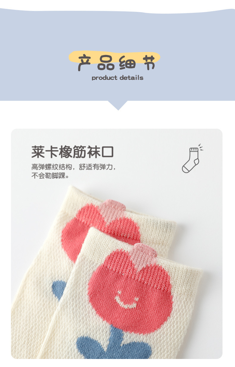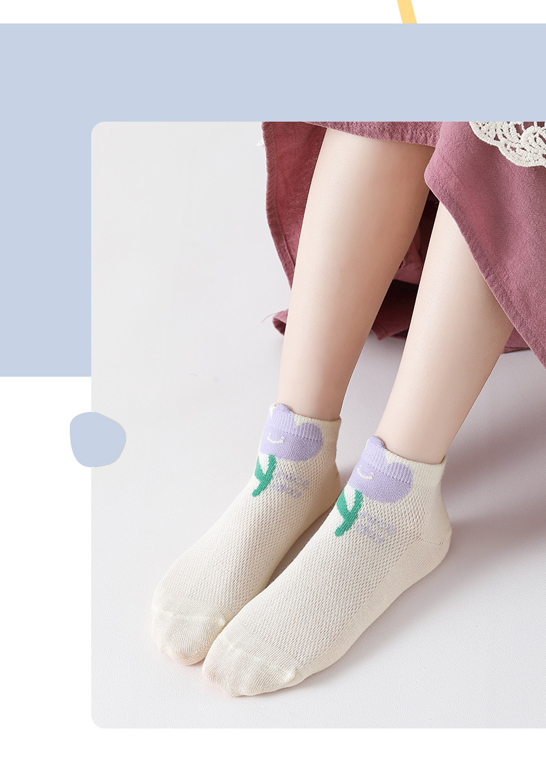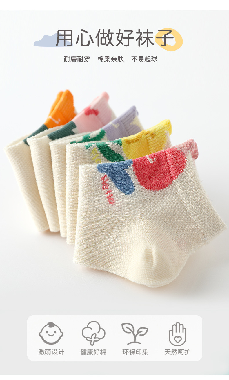 【五双装!纯棉网眼童袜】儿童袜子春夏季网眼薄款棉男女童可爱中筒短袜